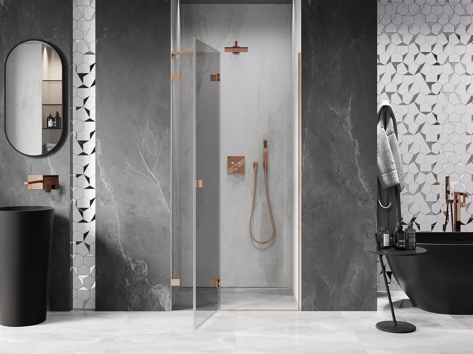 Mexen Lunar L porte de douche pivotante gauche 105 cm, transparent, cuivre brossé - 834L-105-000-65-00-L