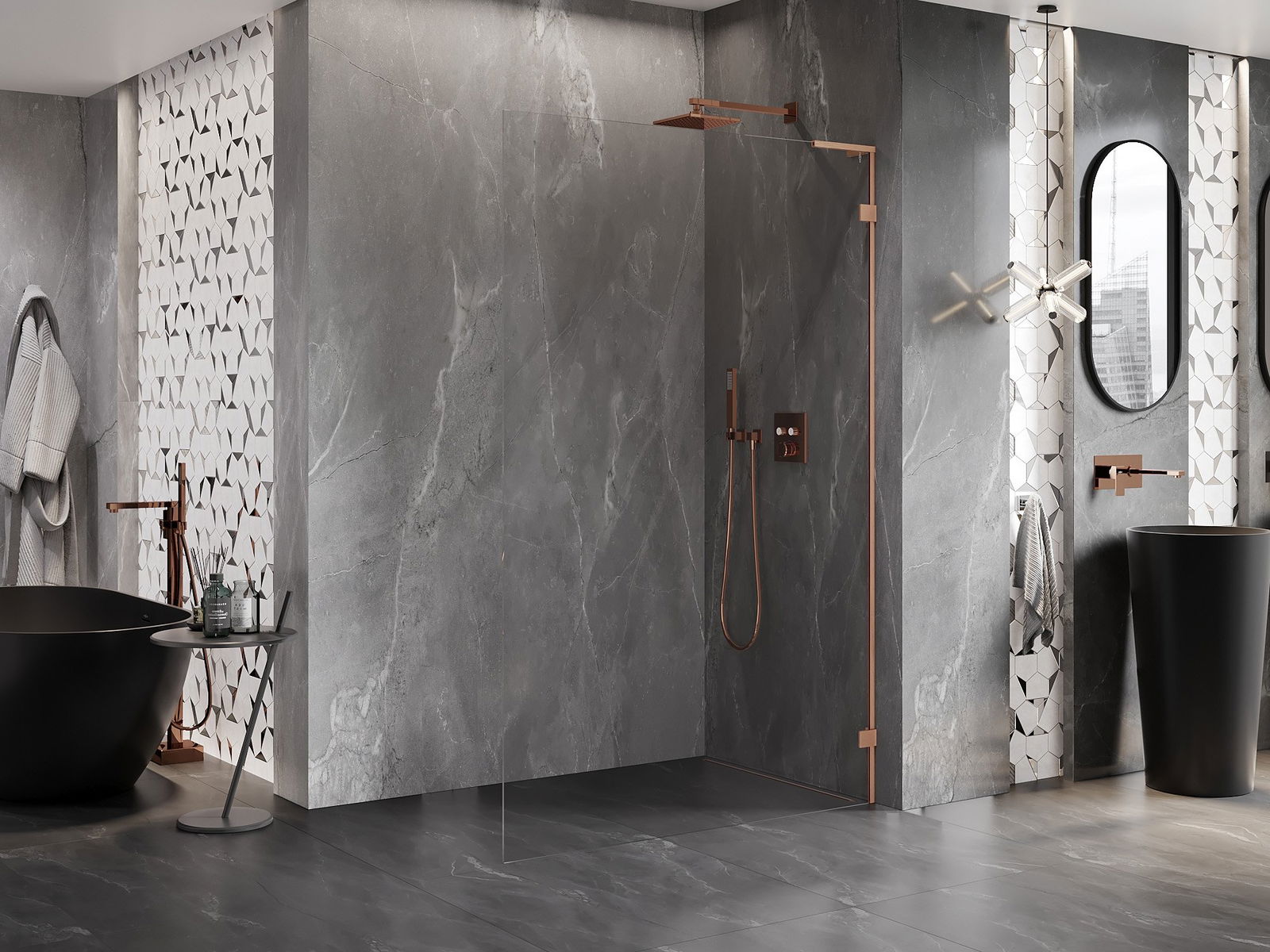 Mexen Lunar L paroi de douche Walk-in côté droit 110 x 200 cm, transparent 8 mm, cuivre brossé - 830L-110-000-65-00-P