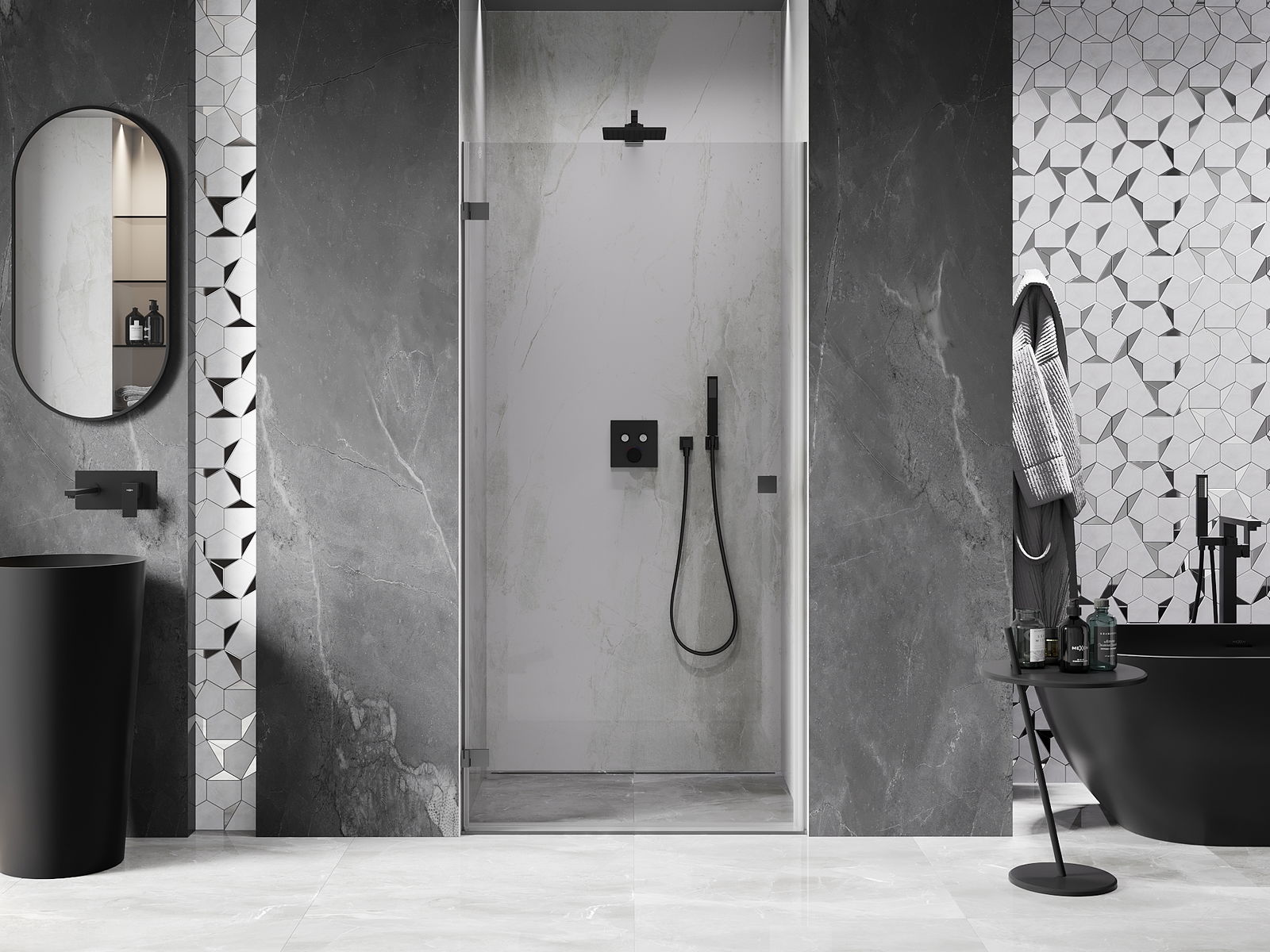 La poignée pratique et confortable est fabriquée en métal durable et résistant. Sa forme à la mode, combinée à une finition assortie à la couleur des profilés, donne à l'ensemble un aspect moderne et stylé, soulignant l'esthétique de chaque salle de bain.