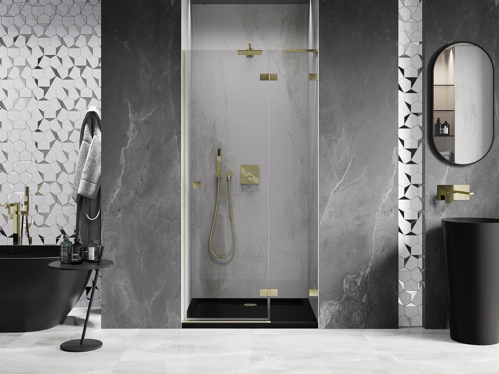 Mexen Lunar L porte de douche battante droite 100 cm, transparent, or brossé - 834L-100-000-55-00-P