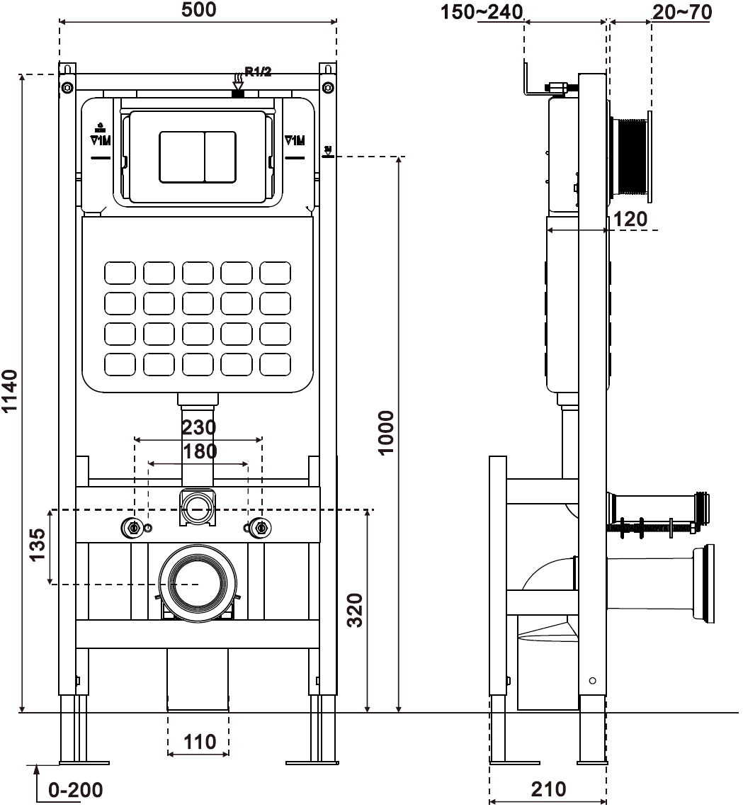 La possibilité de régler la hauteur du châssis permet un meilleur ajustement aux différentes conditions techniques dans la salle de bain. Une plage de réglage flexible assure le confort de l'installation et l'obtention de la hauteur optimale du châssis.