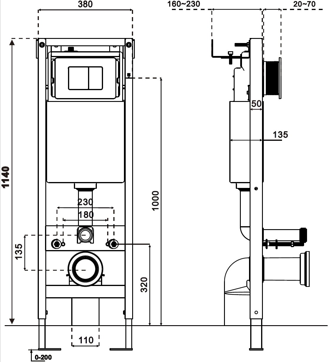 Le réglage en hauteur du cadre permet une meilleure adaptation aux différentes conditions techniques de la salle de bains. La flexibilité de réglage facilite le montage et permet d'obtenir une hauteur optimale du cadre.