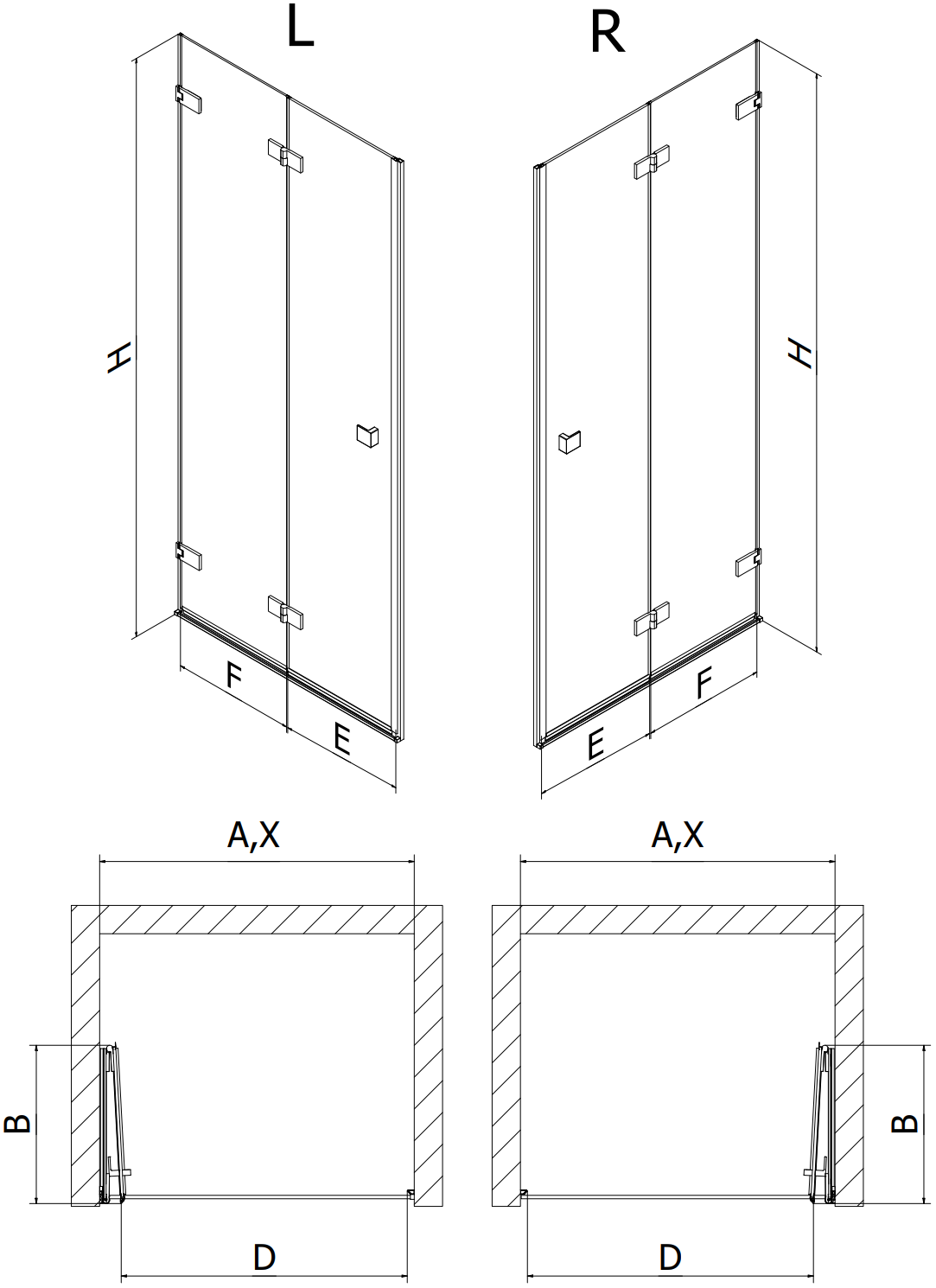 La possibilité de plier les portes, aussi bien vers l'extérieur que vers l'intérieur, permet de gagner plus d'espace lorsque la douche n'est pas utilisée. C'est une solution idéale pour les petites salles de bains, maximisant l'utilisation de l'espace disponible.