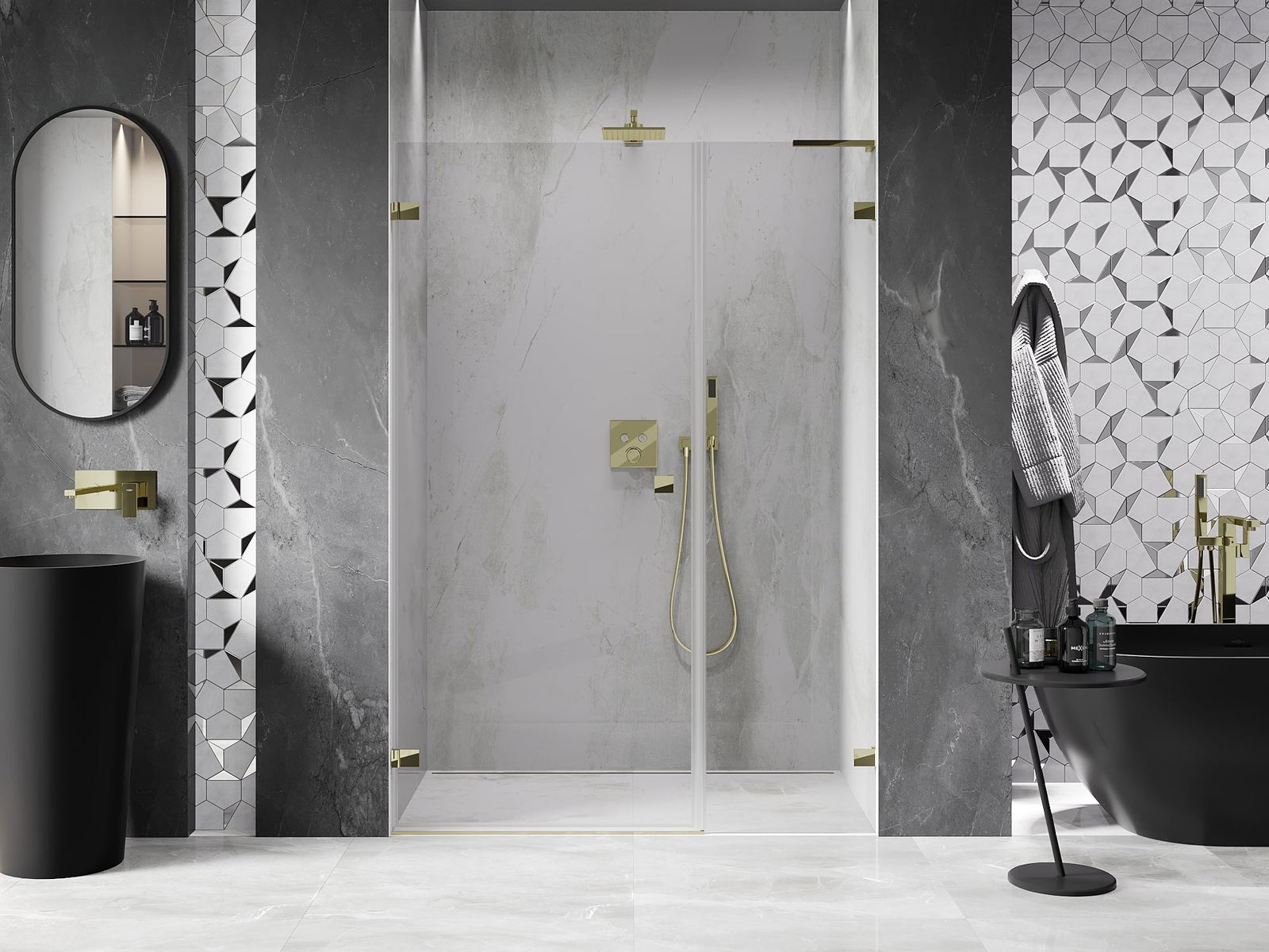 Les pinces ont été fabriquées en laiton très résistant et créent en plus une surface de verre affleurante. C'est un excellent choix qui combine élégance, durabilité et design moderne. Grâce à ces solutions, la douche gagne en esthétique tout en facilitant l'entretien de la propreté.