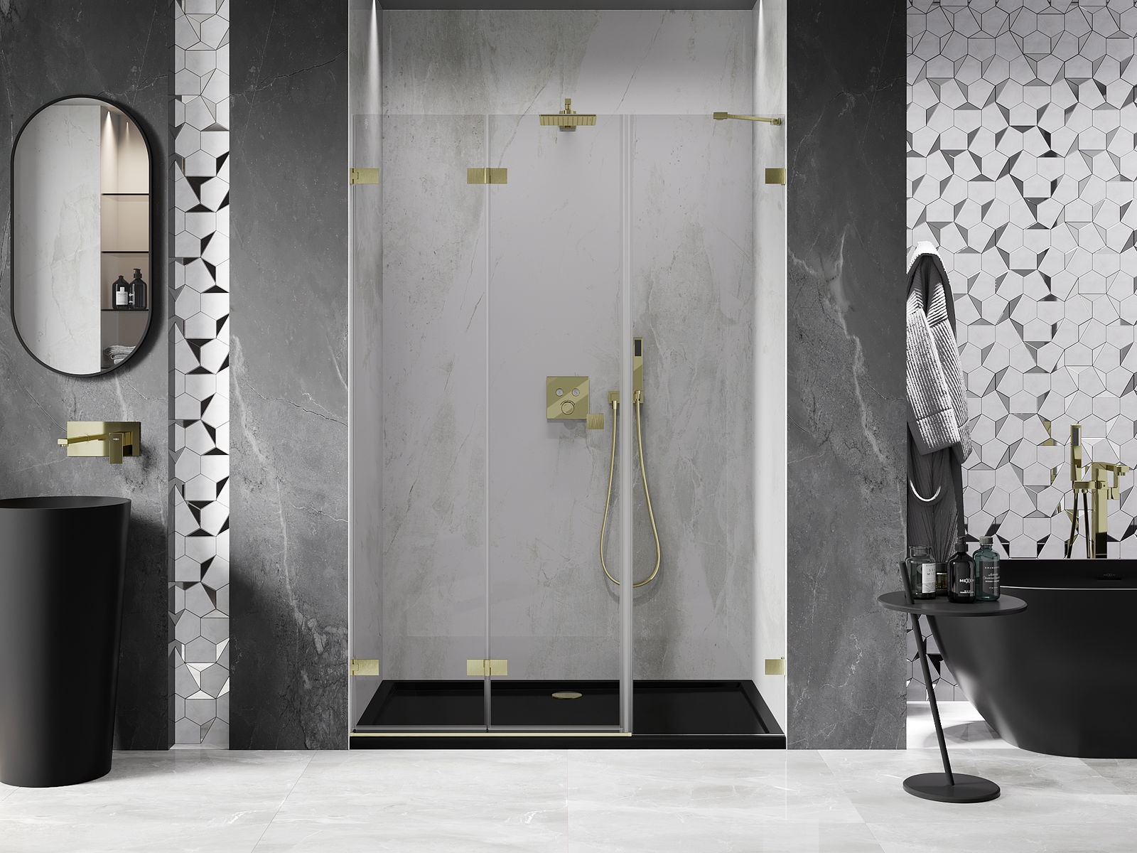 Les pinces et les charnières sont fabriquées en laiton très durable et forment en plus une surface de verre affleurante. C'est un excellent choix qui allie élégance, durabilité et design moderne. Grâce à ces solutions, la douche gagne en esthétique, tout en facilitant le maintien de la propreté.