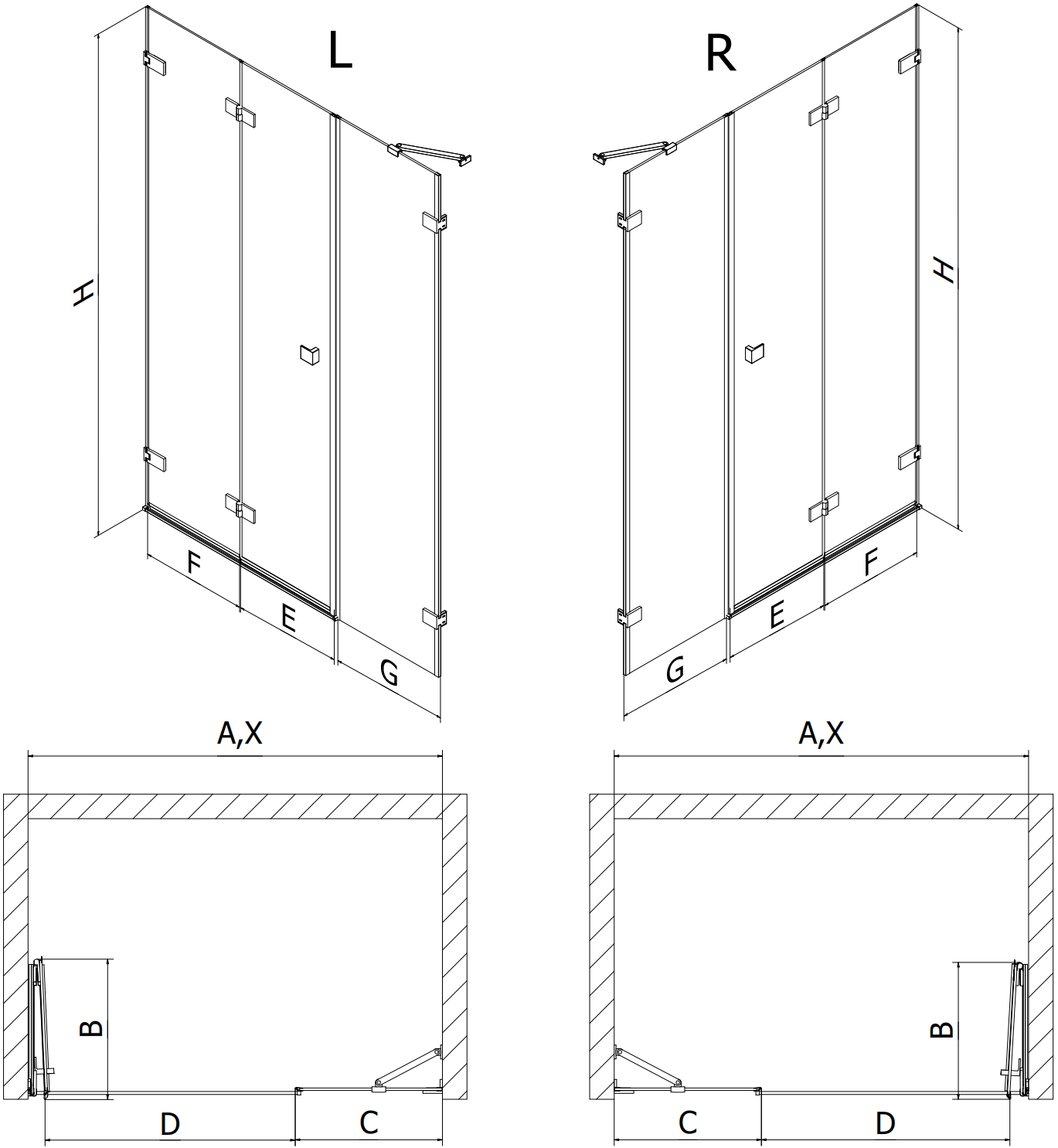Épaisseur du verre: porte 6 mm, paroi 8 mm