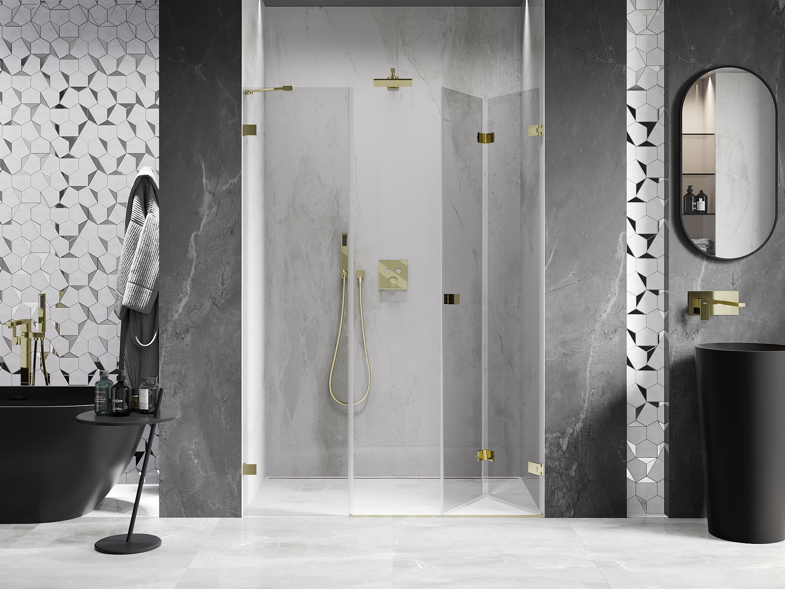 La possibilité de plier les portes, aussi bien vers l'extérieur que vers l'intérieur, permet de gagner plus d'espace lorsque la douche n'est pas utilisée. C'est une solution idéale pour les petites salles de bains, maximisant l'utilisation de l'espace disponible.