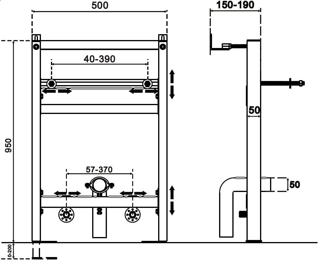 Le réglage en hauteur du cadre permet une meilleure adaptation aux différentes conditions techniques de la salle de bains. La flexibilité de réglage facilite le montage et permet d'obtenir une hauteur optimale du cadre.