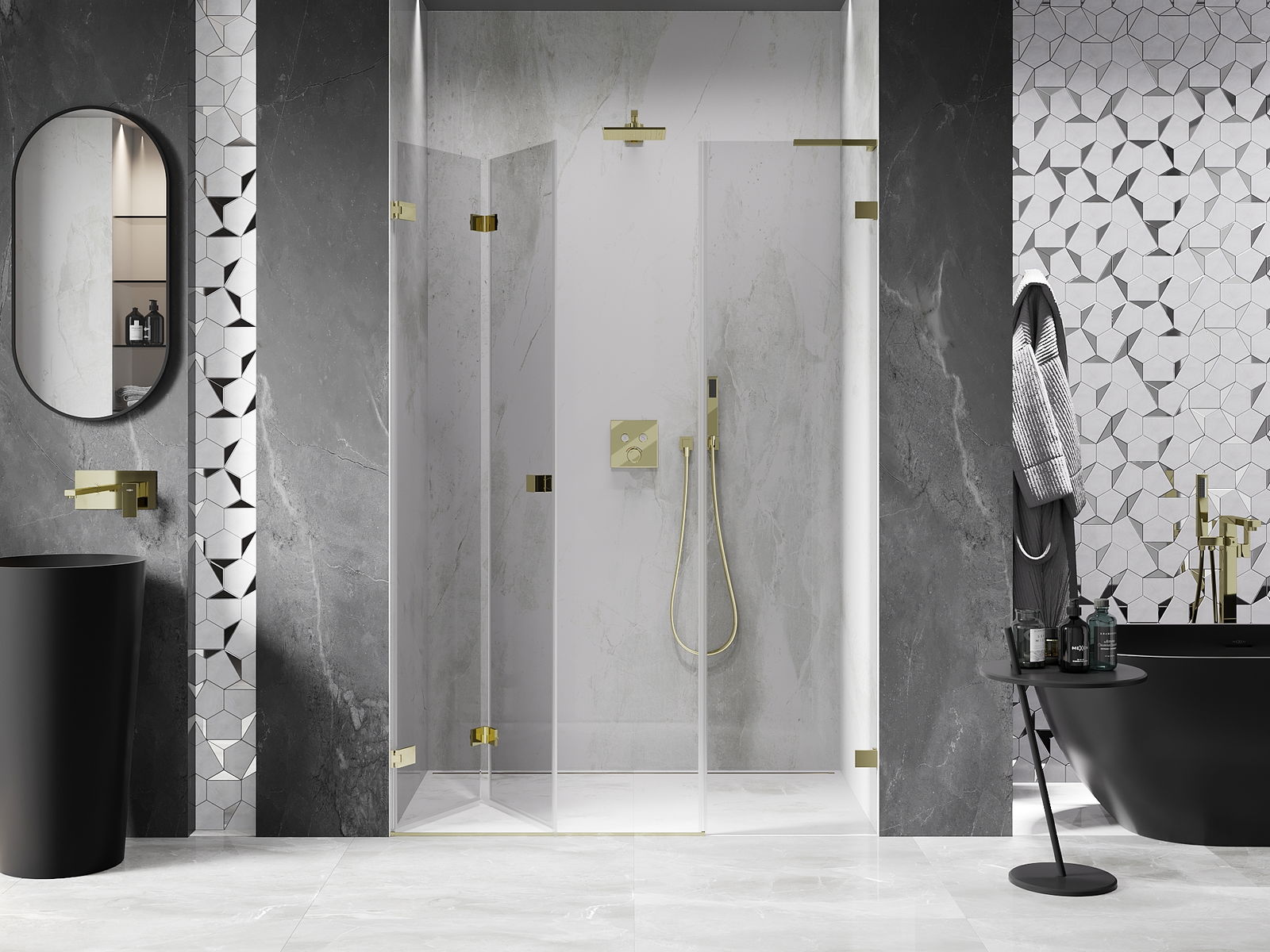 Les pinces et les charnières sont fabriquées en laiton très durable et forment en plus une surface de verre affleurante. C'est un excellent choix qui allie élégance, durabilité et design moderne. Grâce à ces solutions, la douche gagne en esthétique, tout en facilitant le maintien de la propreté.