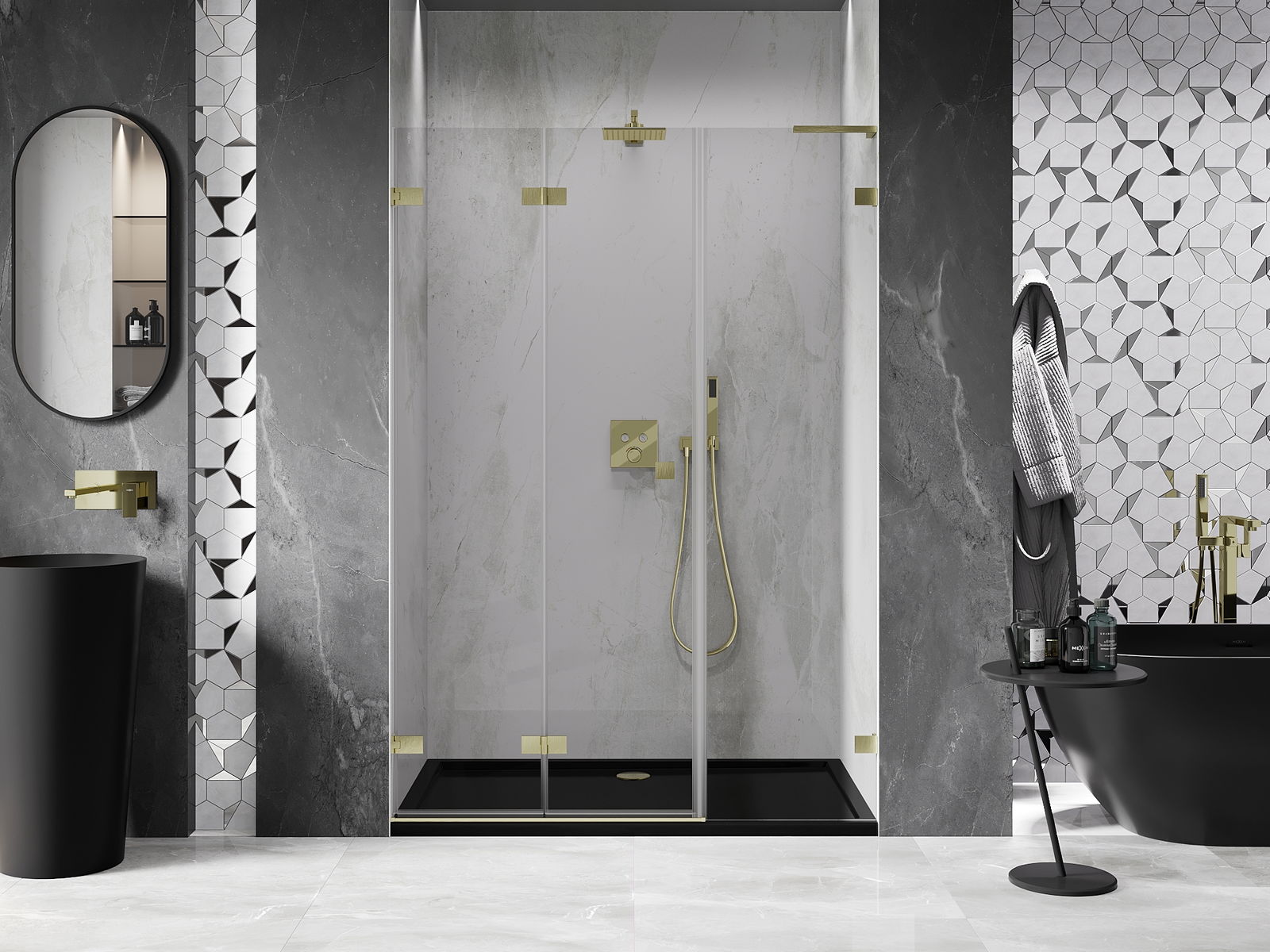 Les pinces et les charnières sont fabriquées en laiton très durable et forment en plus une surface de verre affleurante. C'est un excellent choix qui allie élégance, durabilité et design moderne. Grâce à ces solutions, la douche gagne en esthétique, tout en facilitant le maintien de la propreté.