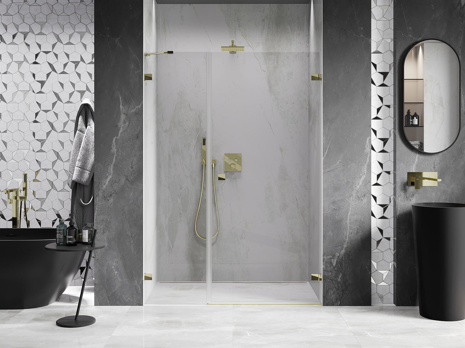 Les pinces ont été fabriquées en laiton très résistant et créent en plus une surface de verre affleurante. C'est un excellent choix qui combine élégance, durabilité et design moderne. Grâce à ces solutions, la douche gagne en esthétique tout en facilitant l'entretien de la propreté.
