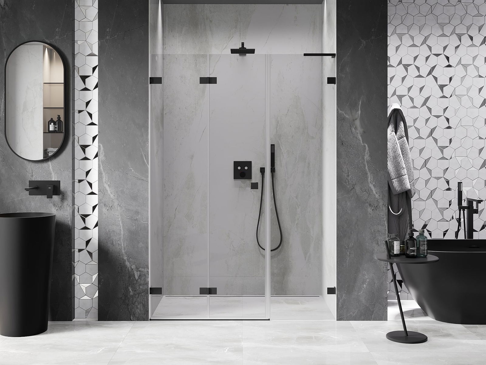 Mexen Lunar-F L porte de douche pliante gauche 130 cm, transparent, noir - 836SL-130-050-70-00-L