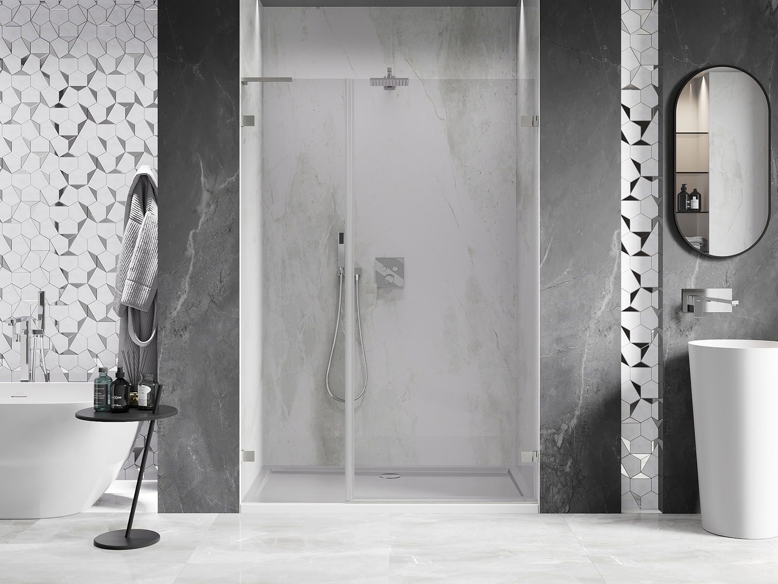 La poignée pratique et confortable est fabriquée en métal durable et résistant. Sa forme à la mode, combinée à une finition assortie à la couleur des profilés, donne à l'ensemble un aspect moderne et stylé, soulignant l'esthétique de chaque salle de bain.