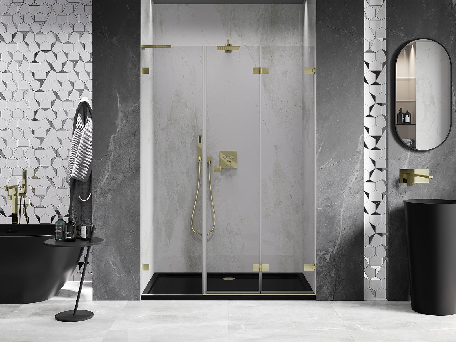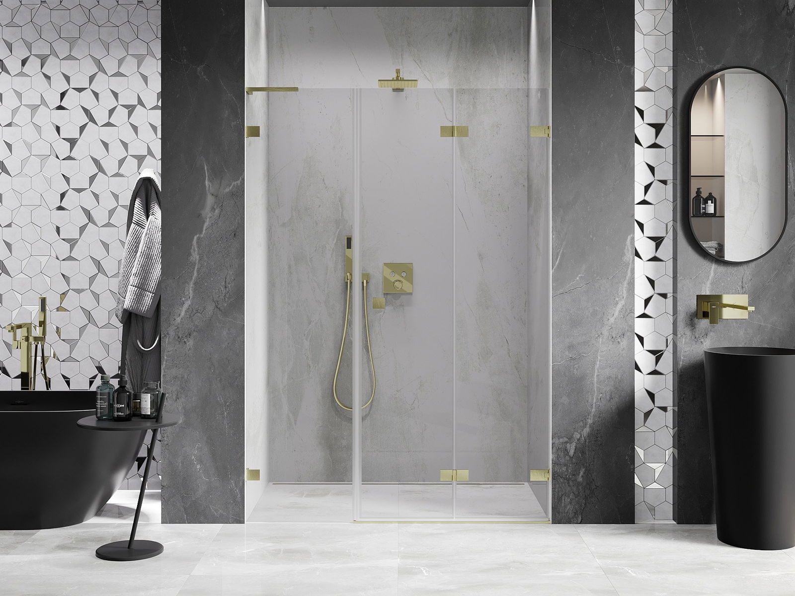 Mexen Lunar-F L porte de douche pliante droite 130 cm, transparent, or brossé - 836SL-130-050-55-00-P