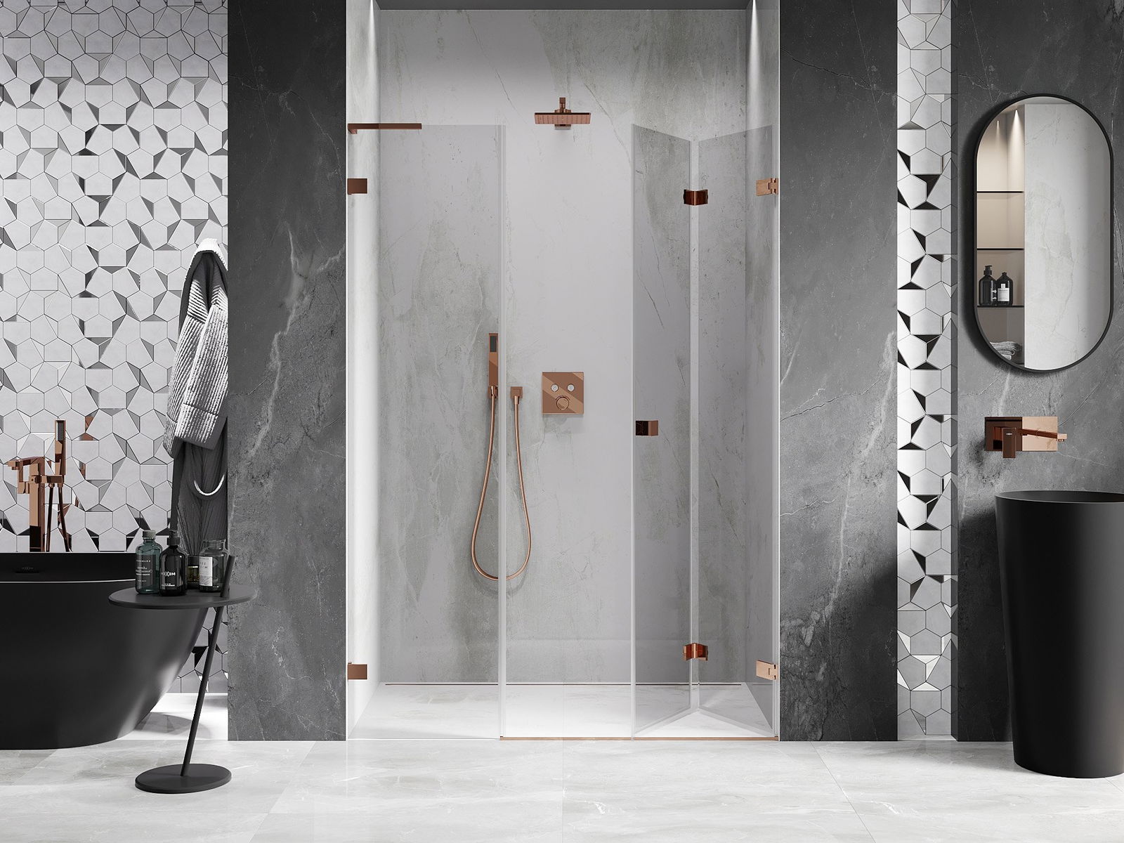 Mexen Lunar-F L portes de douche pliantes droites 135 cm, transparent, or rose - 836SL-135-050-60-00-P