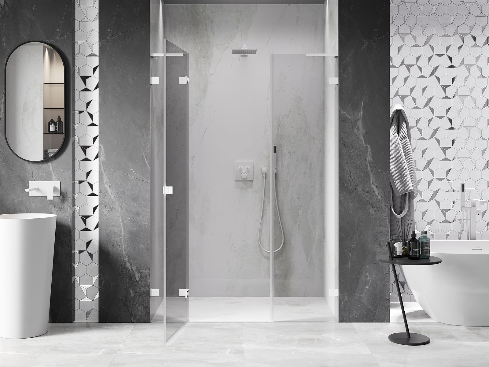 La poignée pratique et confortable est fabriquée en métal durable et résistant. Sa forme à la mode, combinée à une finition assortie à la couleur des profilés, donne à l'ensemble un aspect moderne et stylé, soulignant l'esthétique de chaque salle de bain.