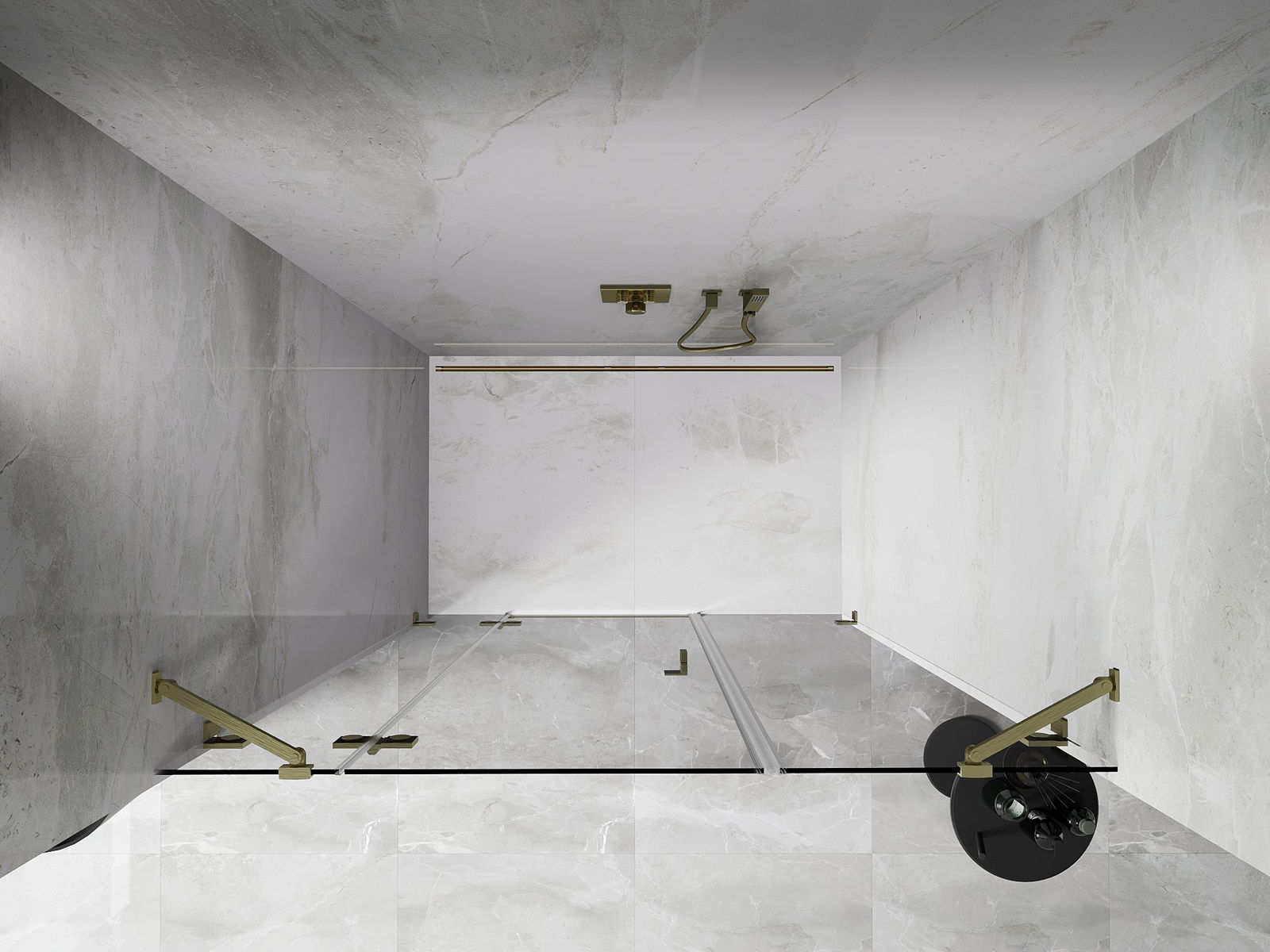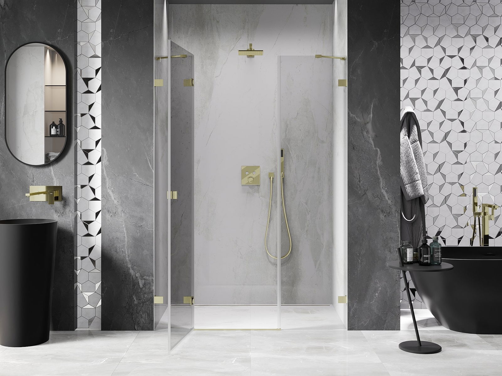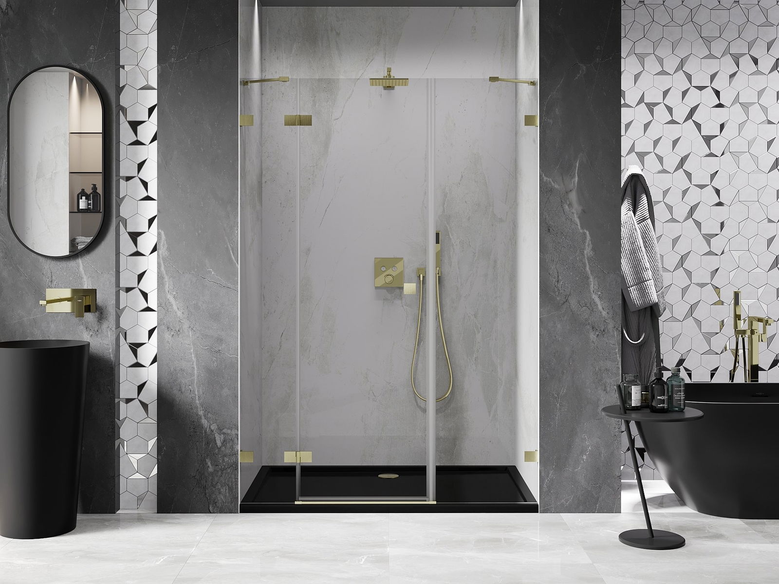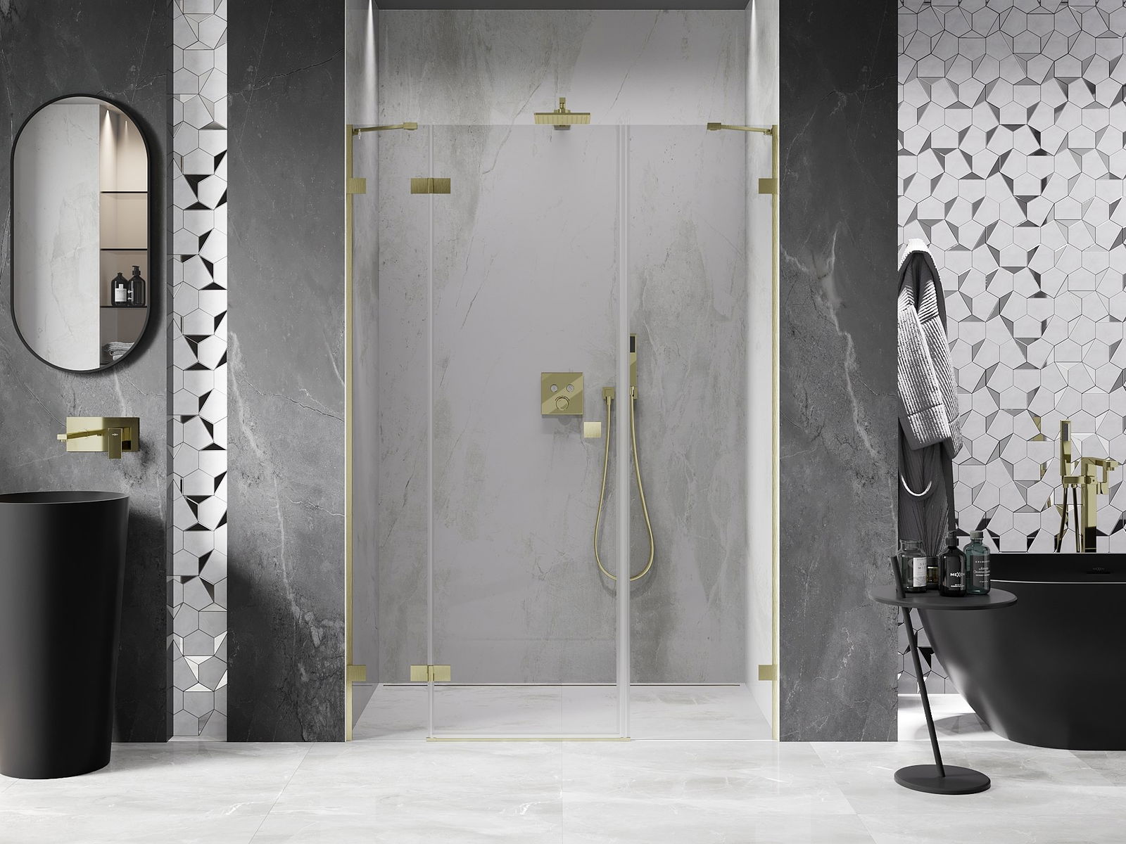 Mexen Lunar porte de douche battante gauche 140 cm, transparent, doré brossé - 834S-140-050-55-00-L