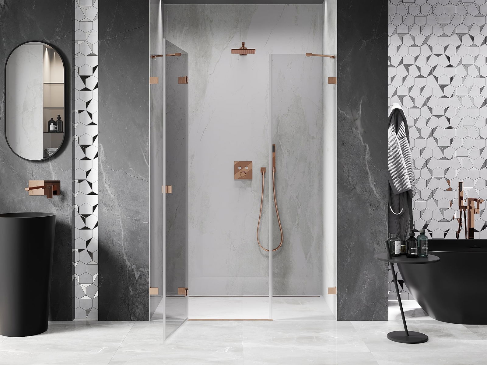 Mexen Lunar porte de douche pivotante gauche 130 cm, transparent, cuivre brossé - 834S-130-050-65-00-L