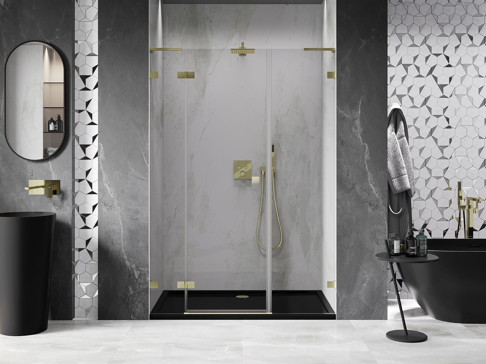 Mexen Lunar L porte de douche pivotante gauche 135 cm, transparent, or brossé - 834SL-135-050-55-00-L