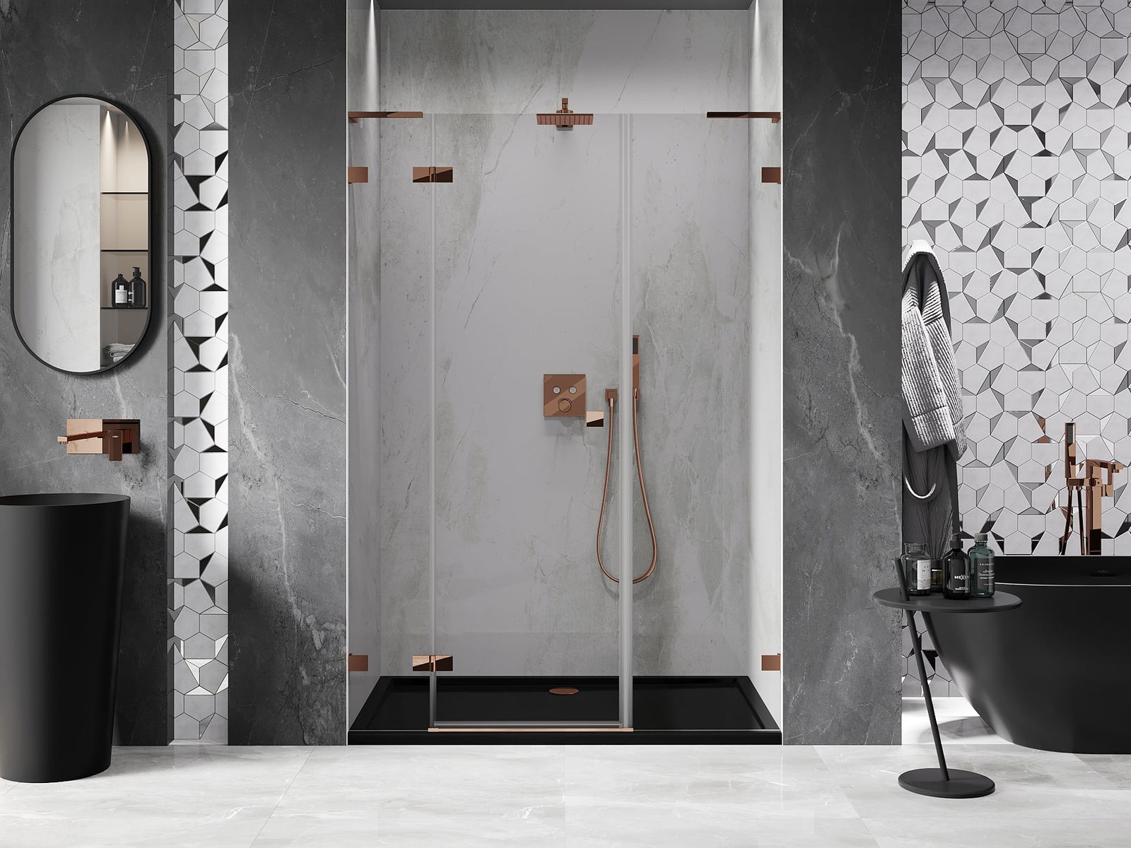 Mexen Lunar L porte de douche battante gauche 140 cm, transparent, or rose - 834SL-140-050-60-00-L