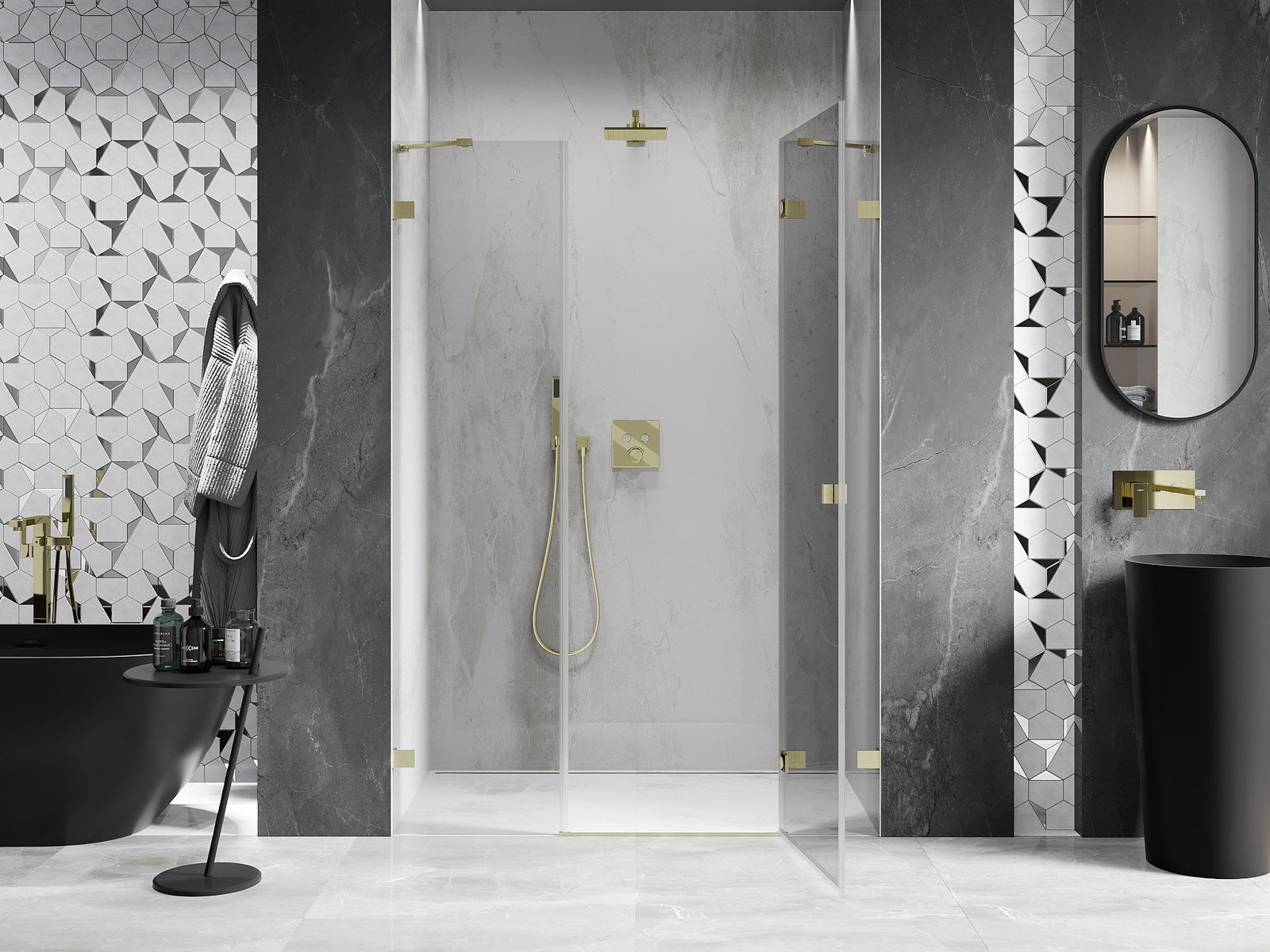 Mexen Lunar porte de douche pivotante droite 140 cm, transparentes, or brossé - 834S-140-050-55-00-P