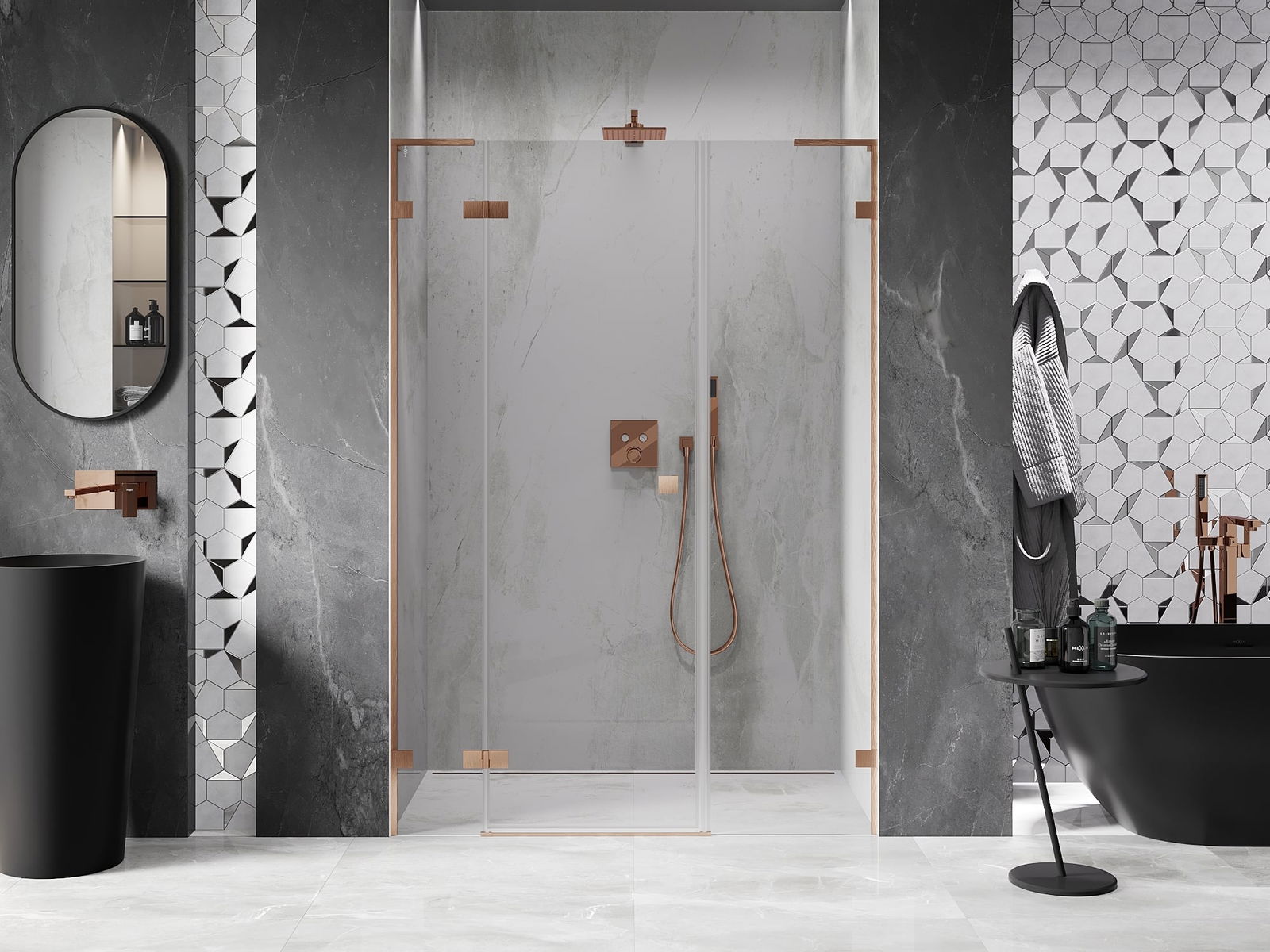 Mexen Lunar L porte de douche pivotante gauche 160 cm, transparent, cuivre brossé - 834SL-160-050-65-00-L