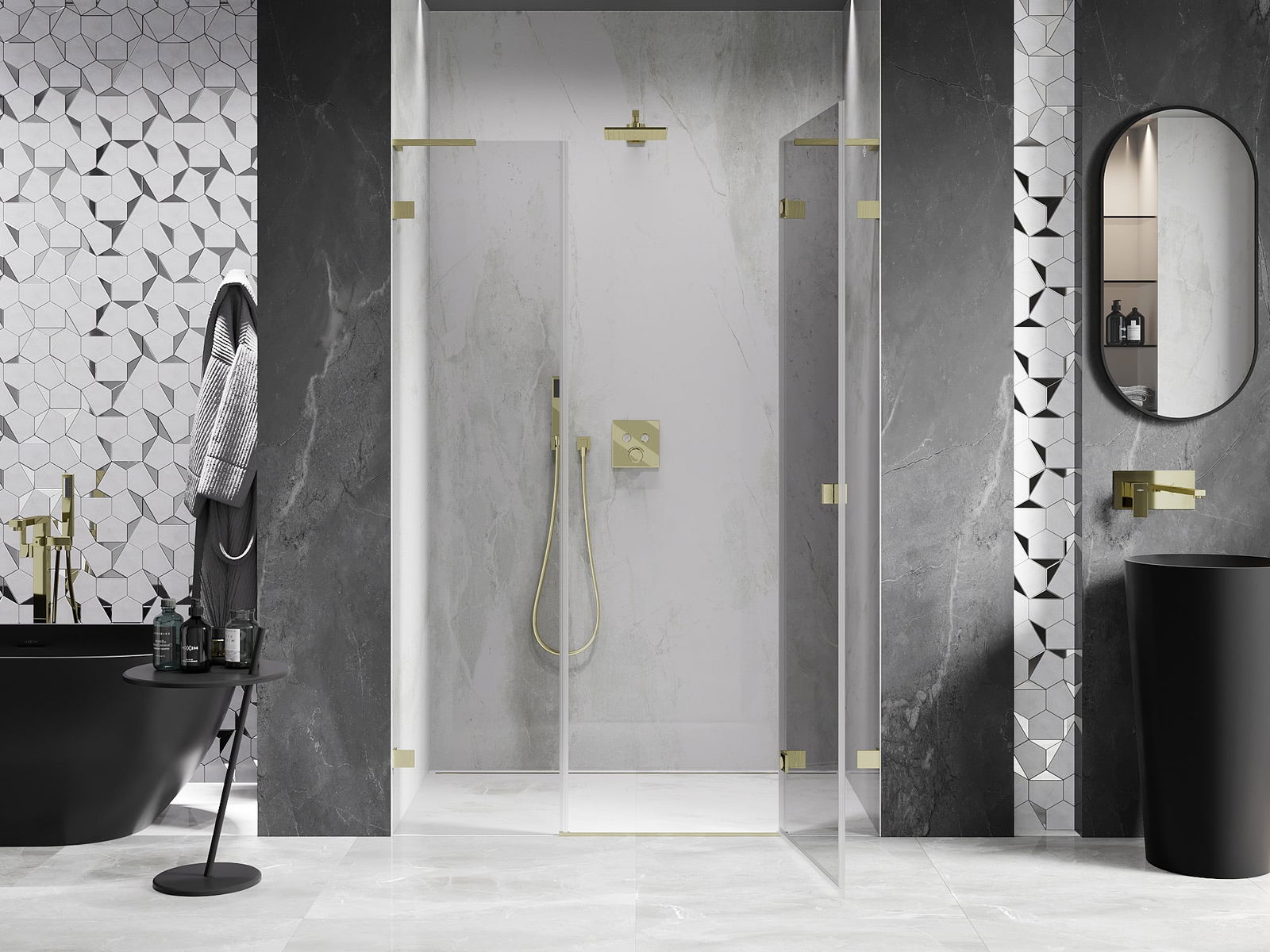 Les pinces et les charnières sont fabriquées en laiton très durable et forment en plus une surface de verre affleurante. C'est un excellent choix qui allie élégance, durabilité et design moderne. Grâce à ces solutions, la douche gagne en esthétique, tout en facilitant le maintien de la propreté.