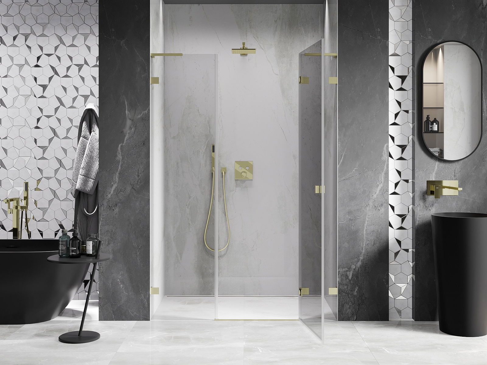 Mexen Lunar L porte de douche pivotante droite 145 cm, transparente, or brossé - 834SL-145-050-55-00-P