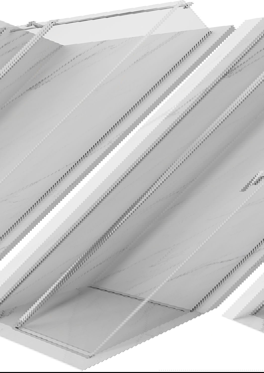 La poignée pratique et confortable est fabriquée en métal durable et résistant. Sa forme à la mode, combinée à une finition assortie à la couleur des profilés, donne à l'ensemble un aspect moderne et stylé, soulignant l'esthétique de chaque salle de bain.