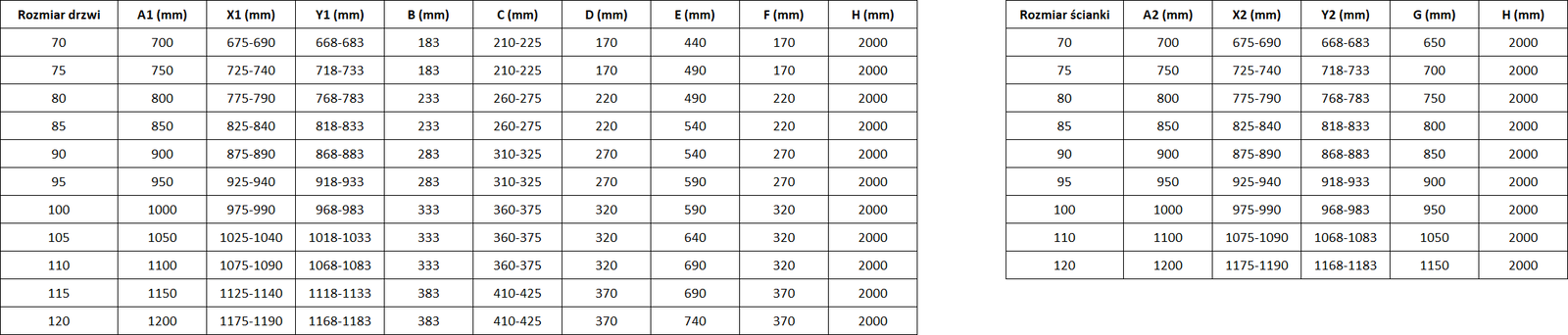 Taille : 90x85 cm (porte 90 cm, paroi 85 cm)