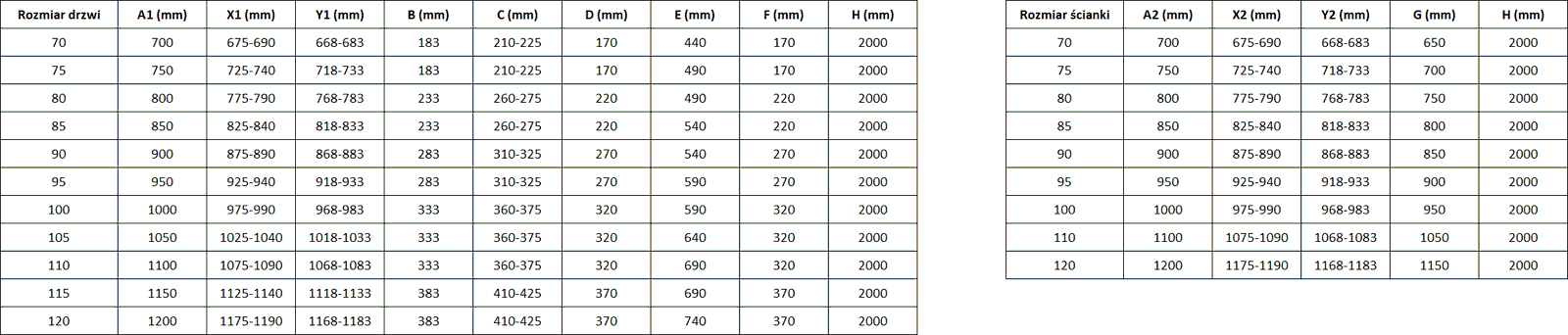 Taille : 120x90 cm (porte 120 cm, paroi 90 cm)