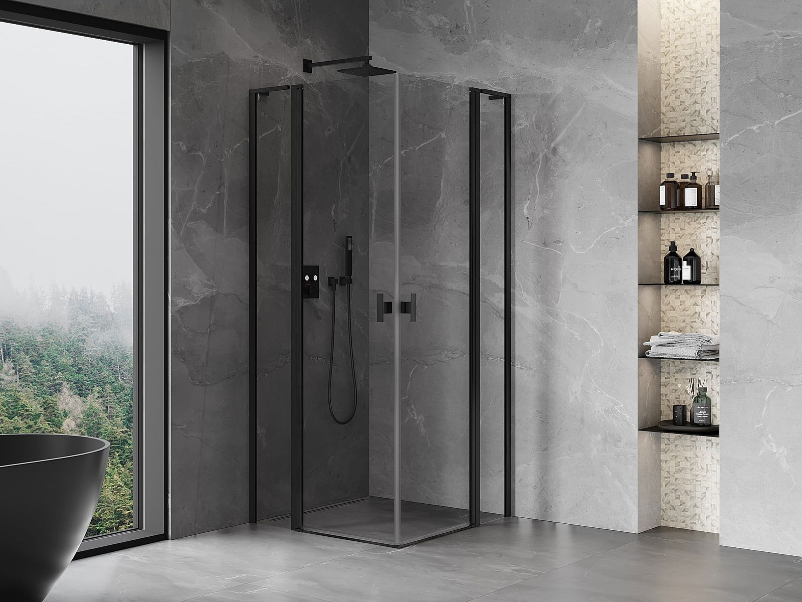 Mexen Mist L Duo cabine de douche pivotante 100 x 100 cm, transparent, noir - 8A4L-100-100-70-00
