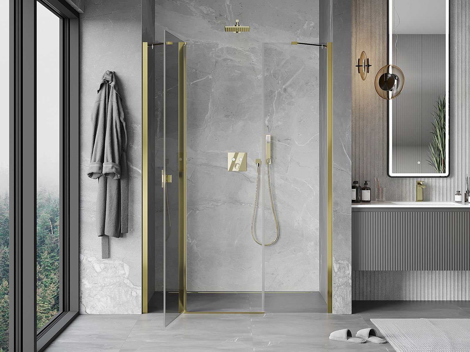 Les portes battantes permettent une liberté maximale lors de l'utilisation. Elles possèdent des charnières solides fabriquées à partir d'un matériau durable, qui ne posent pas de difficultés pour le nettoyage et permettent un accès facile à l'intérieur de la cabine.
