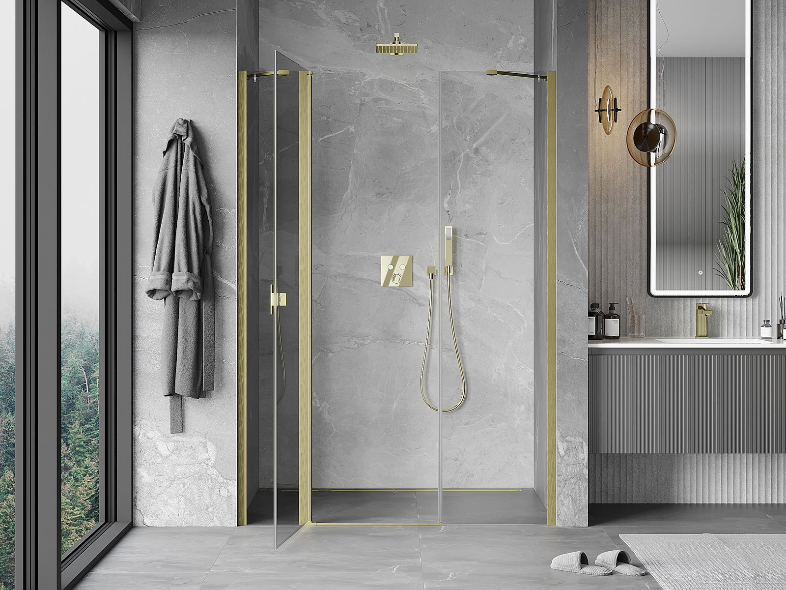 Les portes battantes permettent une liberté maximale lors de l'utilisation. Elles possèdent des charnières solides fabriquées à partir d'un matériau durable, qui ne posent pas de difficultés pour le nettoyage et permettent un accès facile à l'intérieur de la cabine.