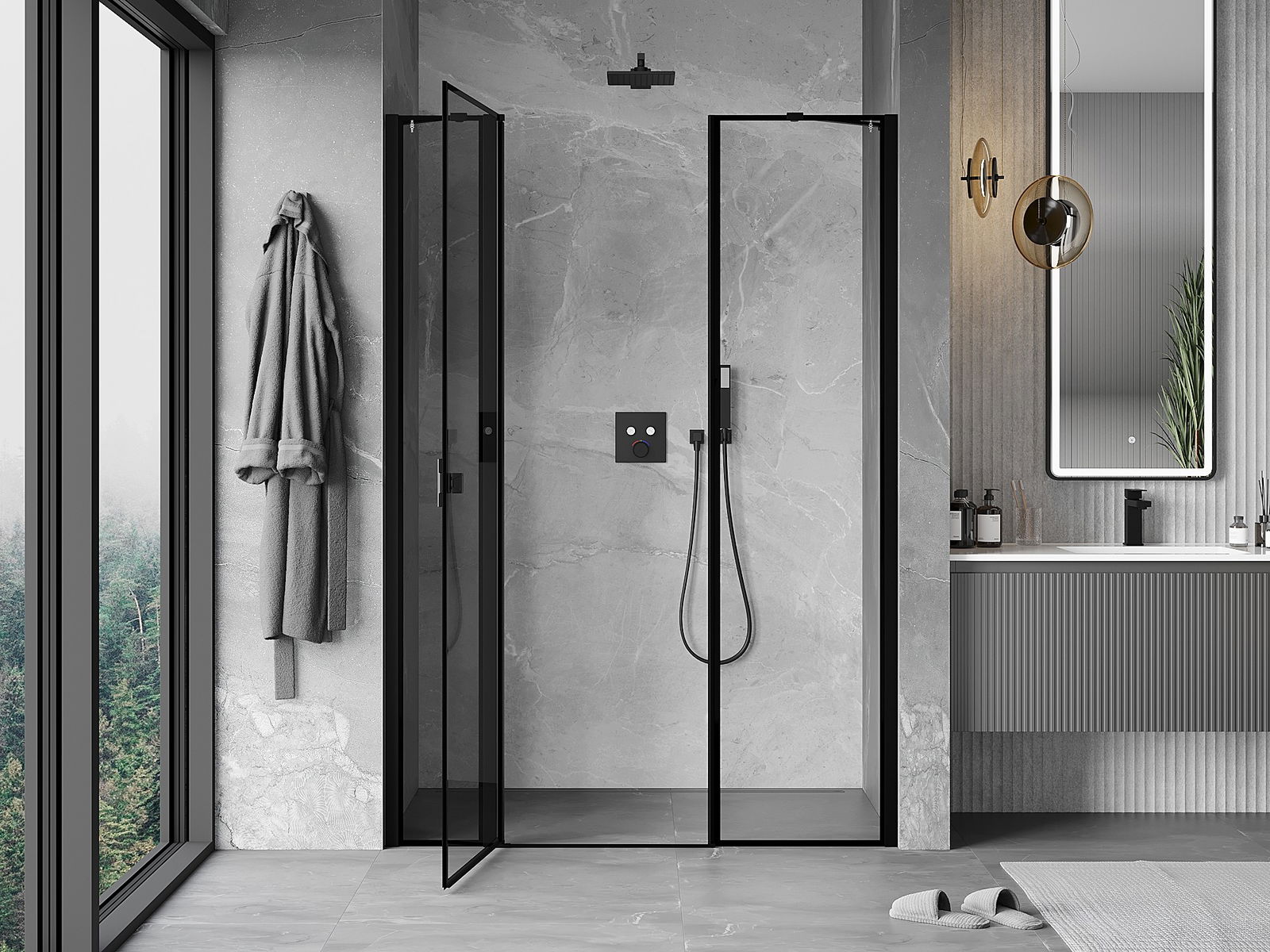 Les portes battantes permettent une liberté maximale lors de l'utilisation. Elles possèdent des charnières solides fabriquées à partir d'un matériau durable, qui ne posent pas de difficultés pour le nettoyage et permettent un accès facile à l'intérieur de la cabine.