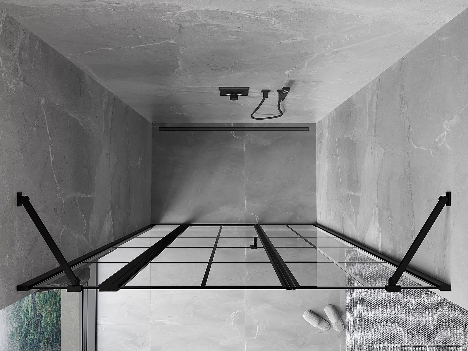 Mexen Mist porte de douche pivotante gauche 155 cm, grille noire, noir - 8A4-155-001-70-77-L