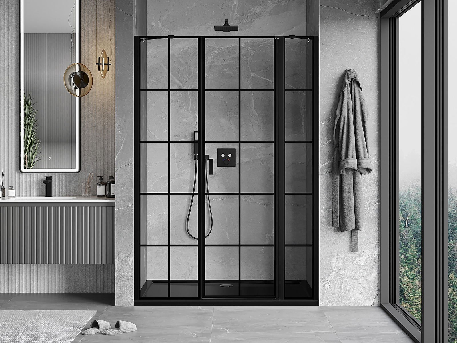 Mexen Mist porte de douche pivotante droite 135 cm, grille noire, noir - 8A4-135-001-70-77-P