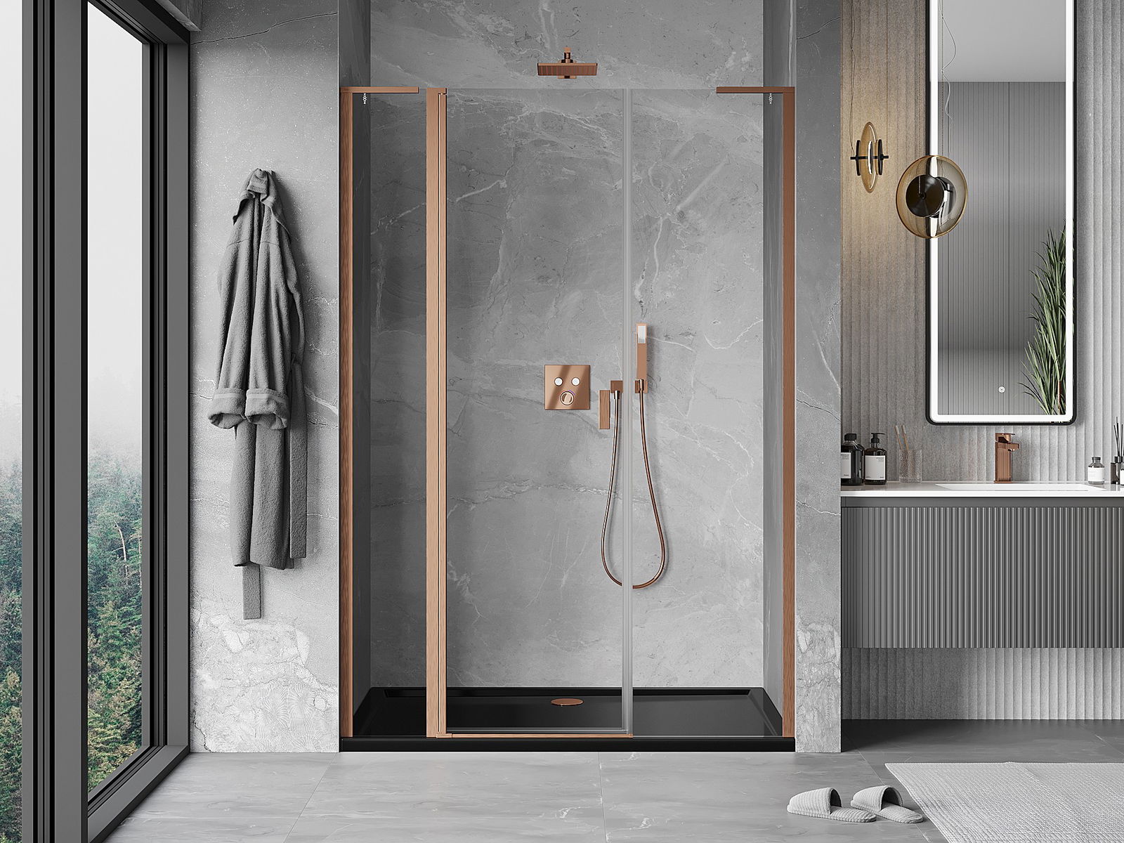 Mexen Mist L porte de douche battante 145 cm, transparent, cuivre brossé - 8A4L-145-001-65-00
