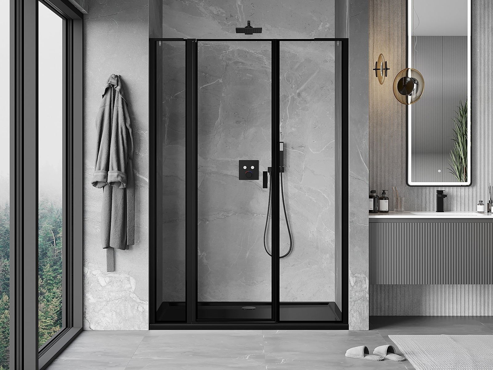 La poignée pratique et confortable est fabriquée en métal durable et résistant. Sa forme à la mode, combinée à une finition assortie à la couleur des profilés, donne à l'ensemble un aspect moderne et stylé, soulignant l'esthétique de chaque salle de bain.