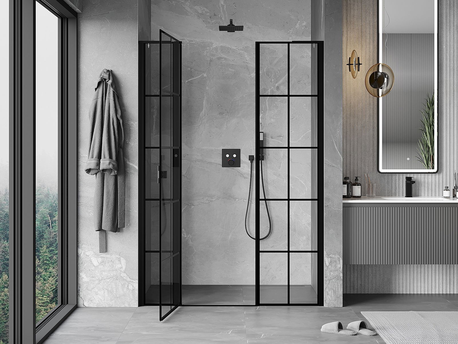 La poignée pratique et confortable est fabriquée en métal durable et résistant. Sa forme à la mode, combinée à une finition assortie à la couleur des profilés, donne à l'ensemble un aspect moderne et stylé, soulignant l'esthétique de chaque salle de bain.