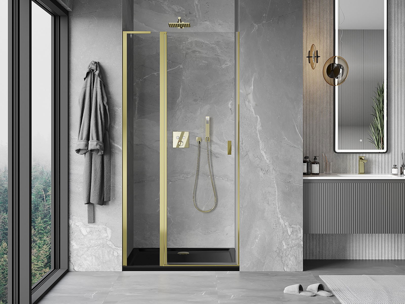 Mexen Mist L porte de douche pivotante 90 cm, transparent, doré - 8A4L-090-000-50-00