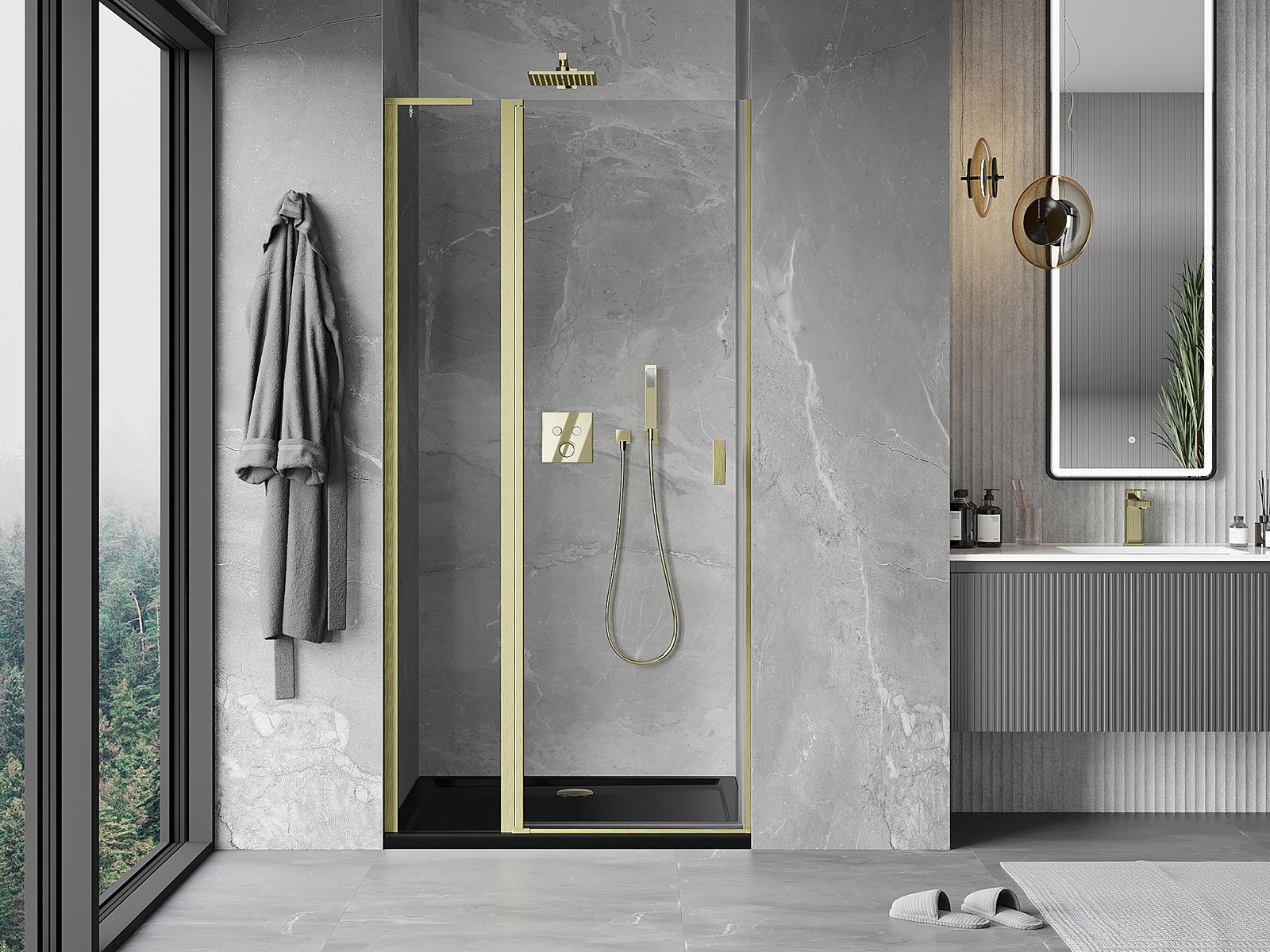 La poignée pratique et confortable est fabriquée en métal durable et résistant. Sa forme à la mode, combinée à une finition assortie à la couleur des profilés, donne à l'ensemble un aspect moderne et stylé, soulignant l'esthétique de chaque salle de bain.