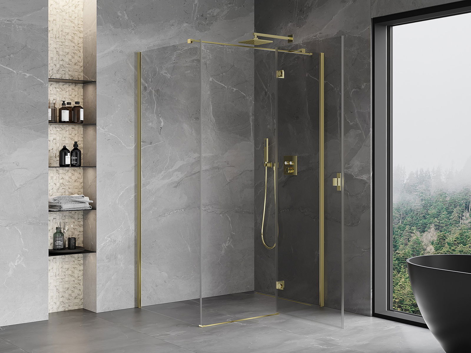 La poignée pratique et confortable est fabriquée en métal durable et résistant. Sa forme à la mode, combinée à une finition assortie à la couleur des profilés, donne à l'ensemble un aspect moderne et stylé, soulignant l'esthétique de chaque salle de bain.
