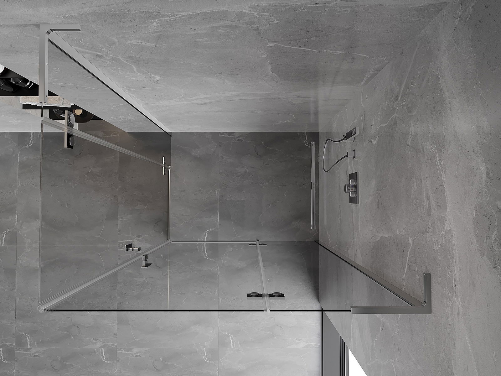 La poignée pratique et confortable est fabriquée en métal durable et résistant. Sa forme à la mode, combinée à une finition assortie à la couleur des profilés, donne à l'ensemble un aspect moderne et stylé, soulignant l'esthétique de chaque salle de bain.