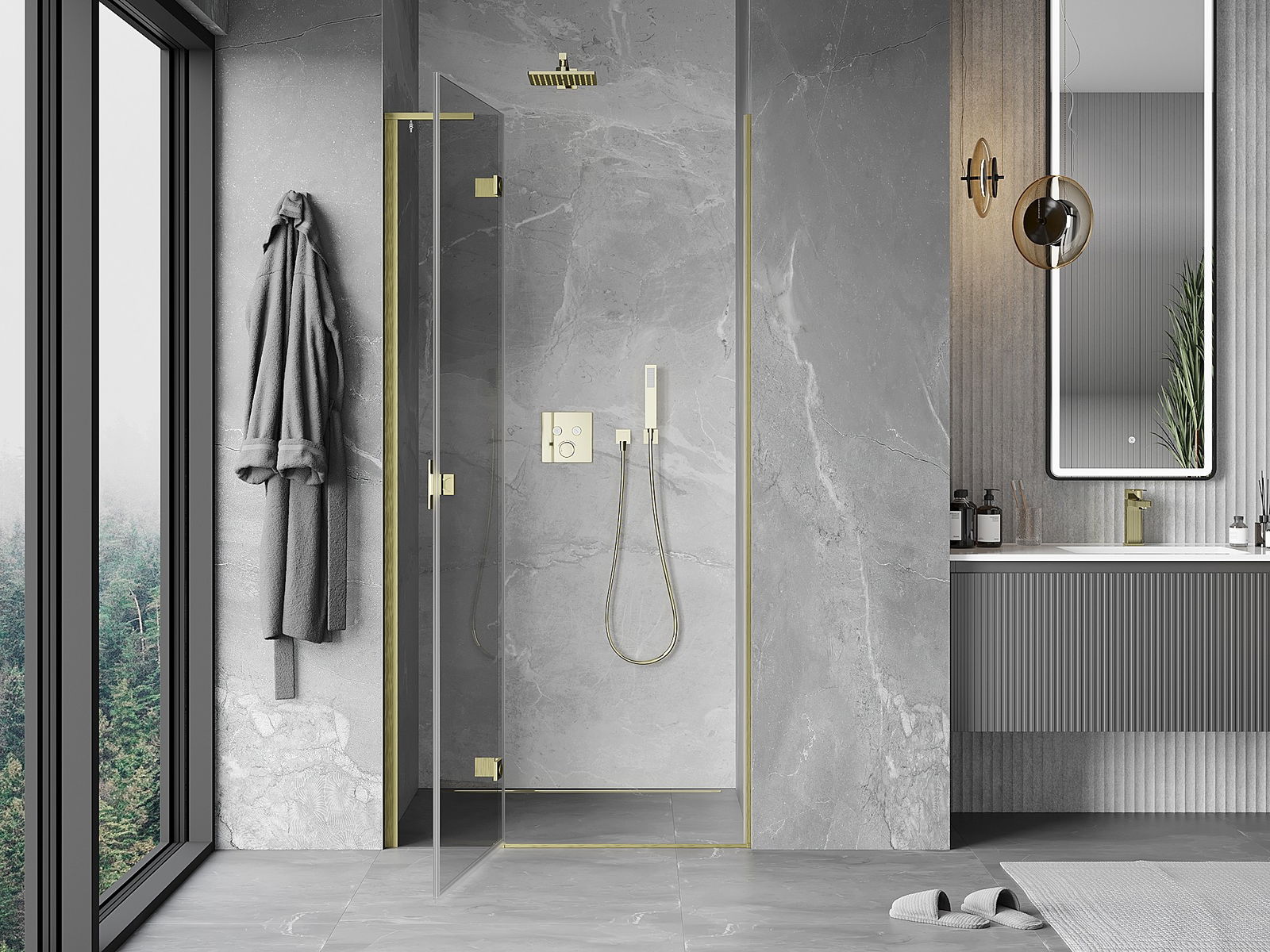 La poignée pratique et confortable est fabriquée en métal durable et résistant. Sa forme à la mode, combinée à une finition assortie à la couleur des profilés, donne à l'ensemble un aspect moderne et stylé, soulignant l'esthétique de chaque salle de bain.