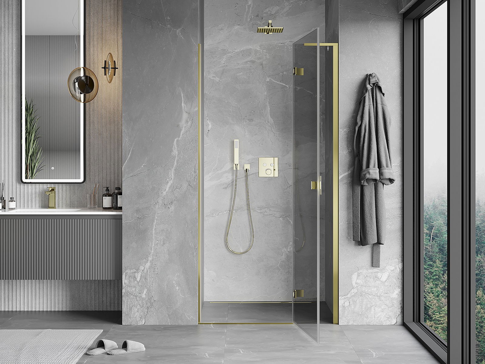 La poignée pratique et confortable est fabriquée en métal durable et résistant. Sa forme à la mode, combinée à une finition assortie à la couleur des profilés, donne à l'ensemble un aspect moderne et stylé, soulignant l'esthétique de chaque salle de bain.