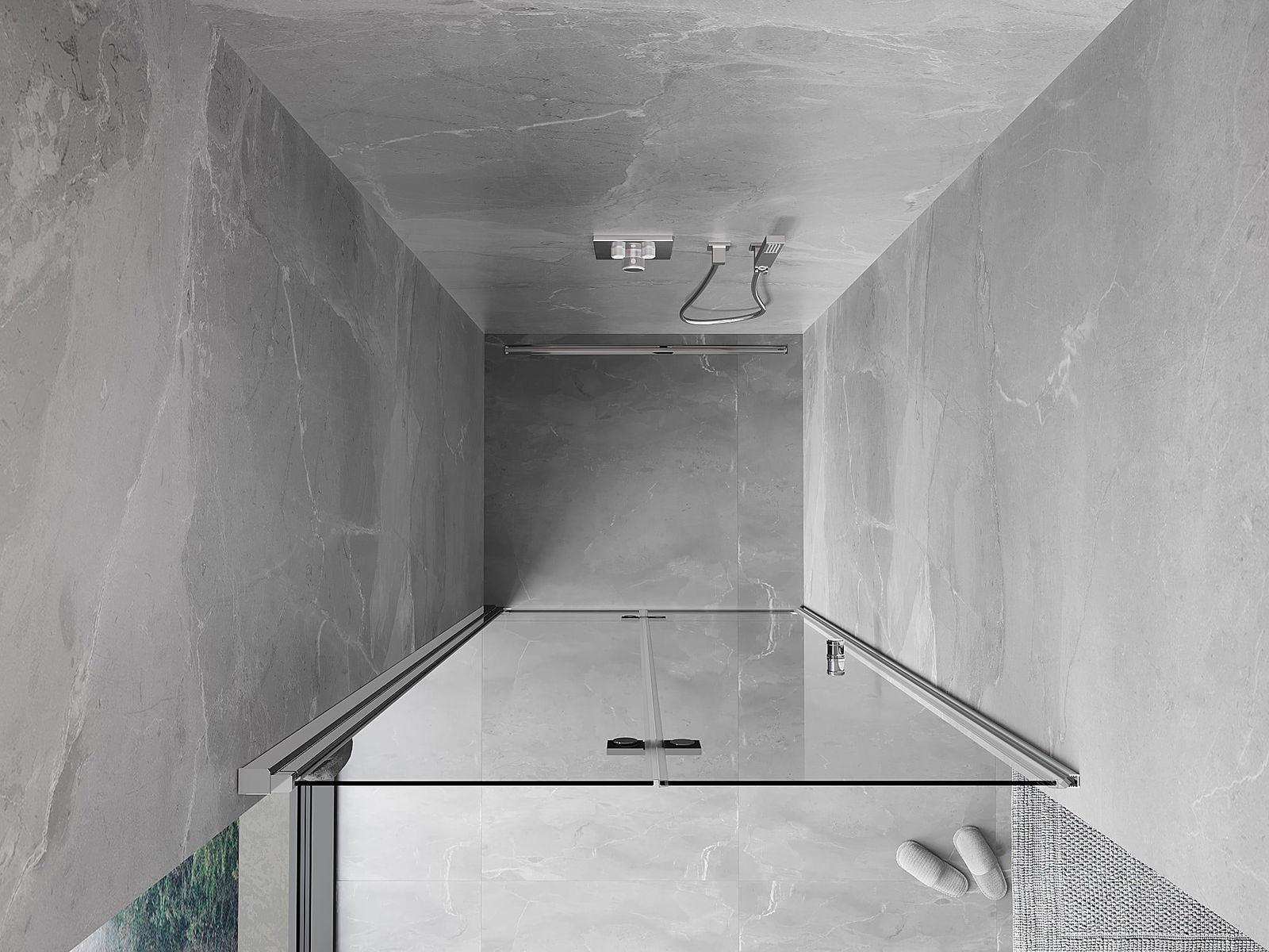 La poignée pratique et confortable est fabriquée en métal durable et résistant. Sa forme à la mode, combinée à une finition assortie à la couleur des profilés, donne à l'ensemble un aspect moderne et stylé, soulignant l'esthétique de chaque salle de bain.