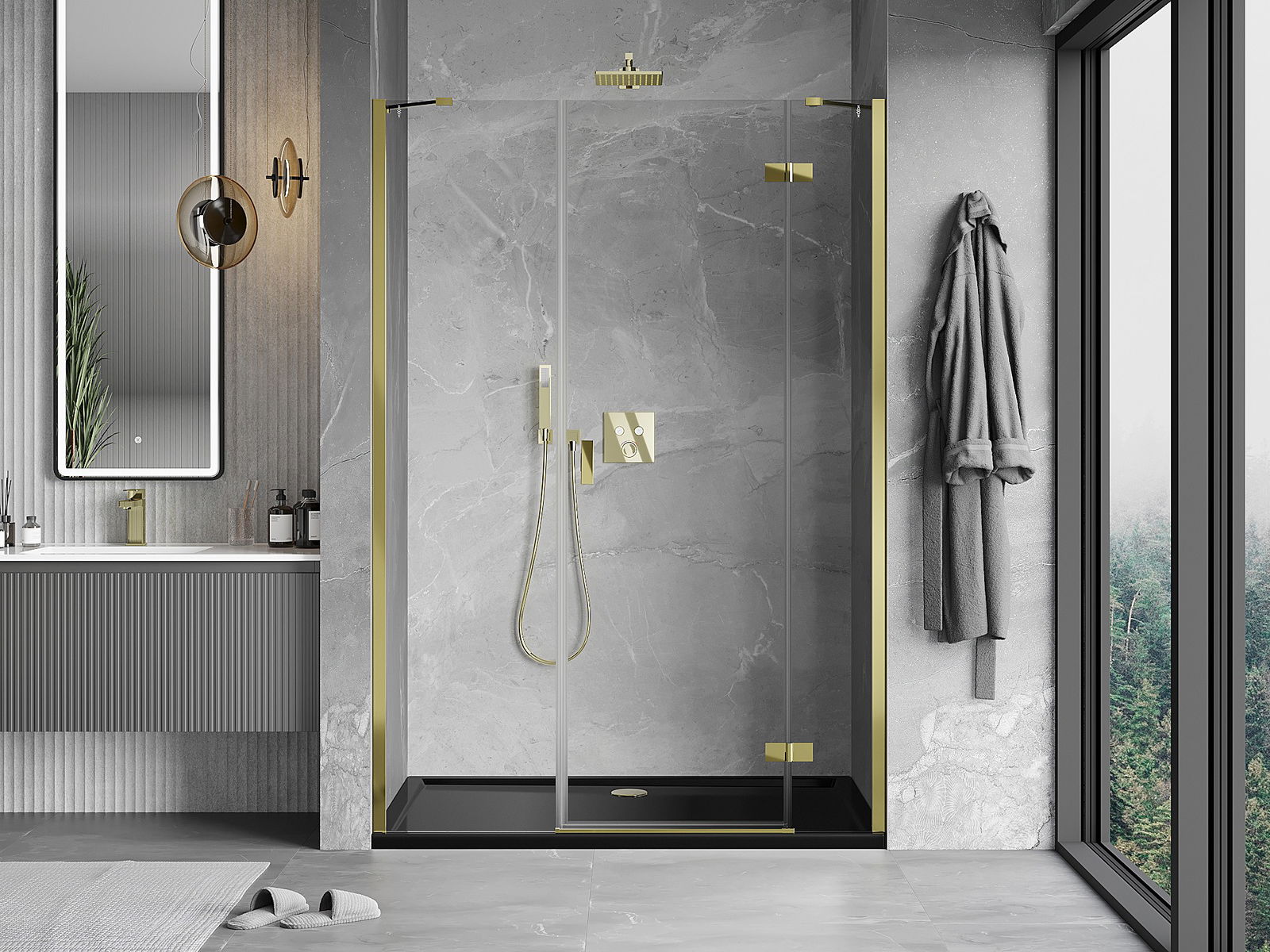 La poignée pratique et confortable est fabriquée en métal durable et résistant. Sa forme à la mode, combinée à une finition assortie à la couleur des profilés, donne à l'ensemble un aspect moderne et stylé, soulignant l'esthétique de chaque salle de bain.