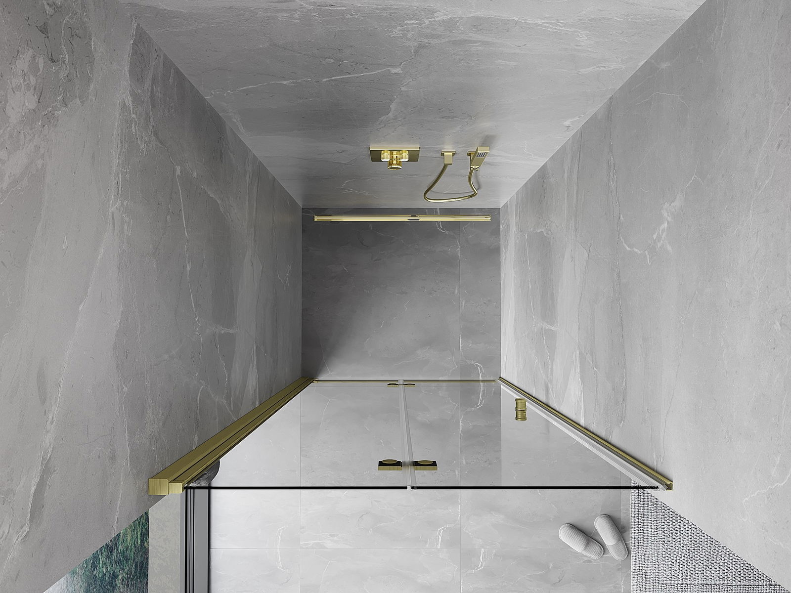 La poignée pratique et confortable est fabriquée en métal durable et résistant. Sa forme à la mode, combinée à une finition assortie à la couleur des profilés, donne à l'ensemble un aspect moderne et stylé, soulignant l'esthétique de chaque salle de bain.
