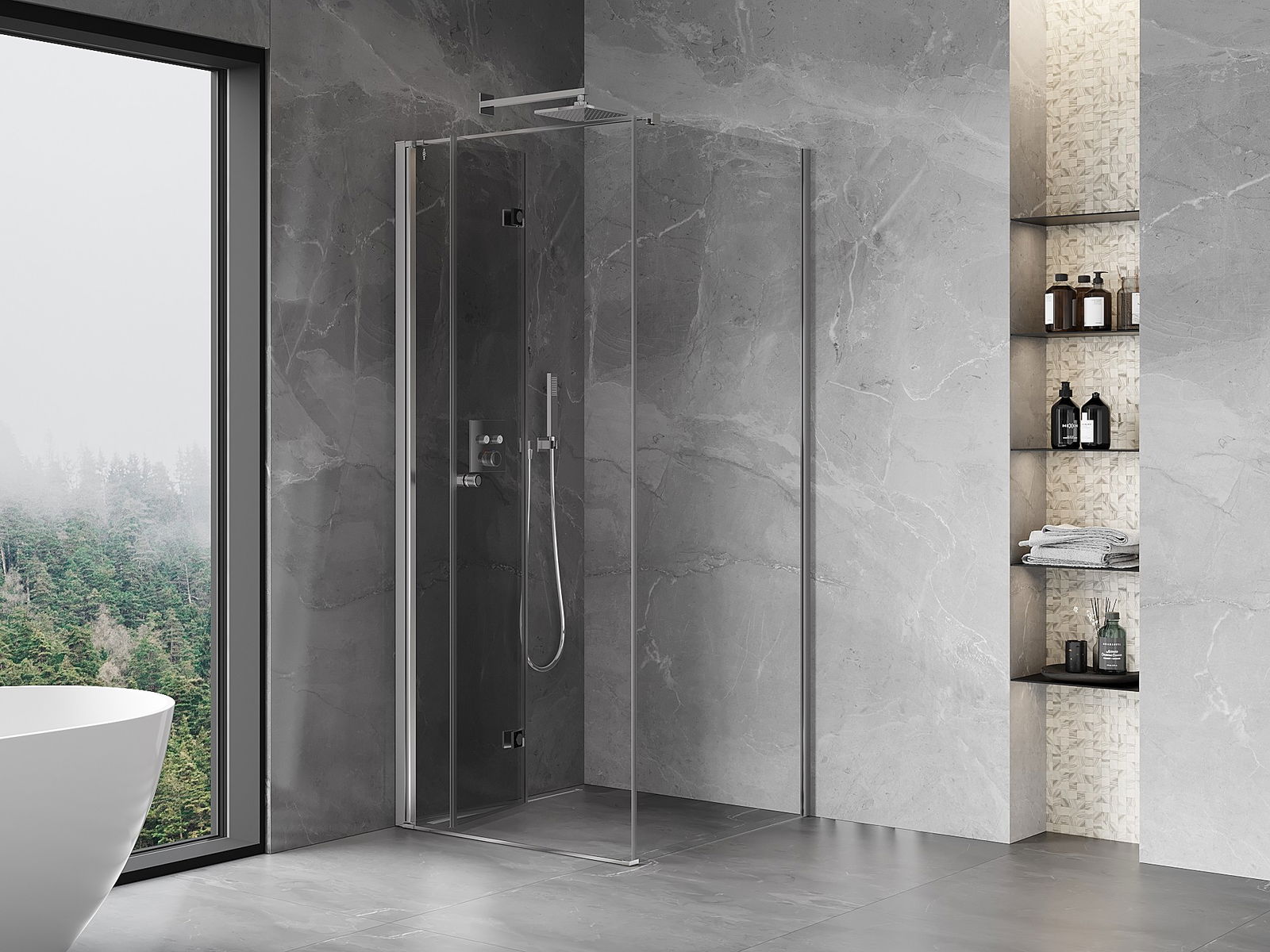 La possibilité de plier les portes, aussi bien vers l'extérieur que vers l'intérieur, permet de gagner plus d'espace lorsque la douche n'est pas utilisée. C'est une solution idéale pour les petites salles de bains, maximisant l'utilisation de l'espace disponible.